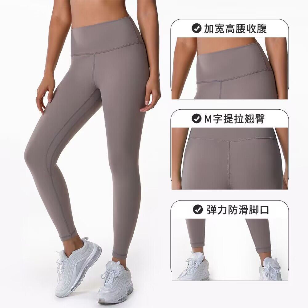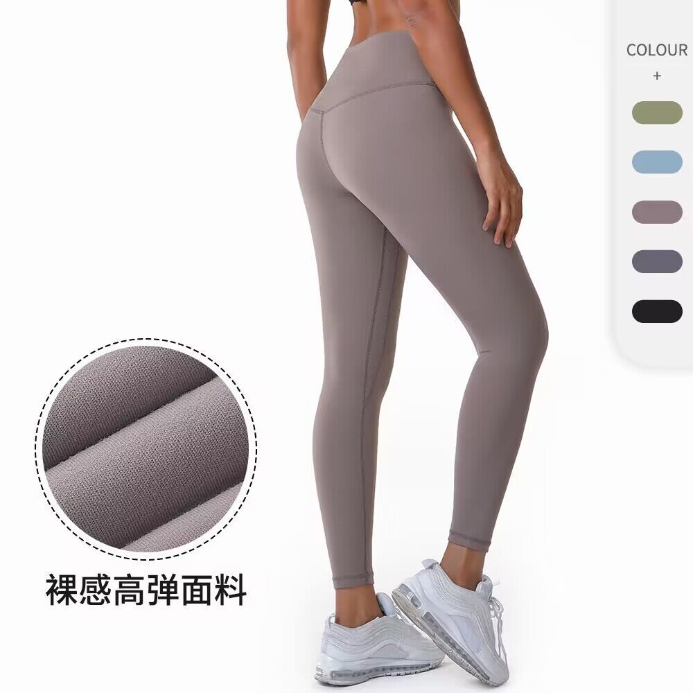 Women's Nude Yoga Pants Double-sided Brushed High Waist Belly Slimming Butt Lifting Tight Sports Pants Running Fitness Pants