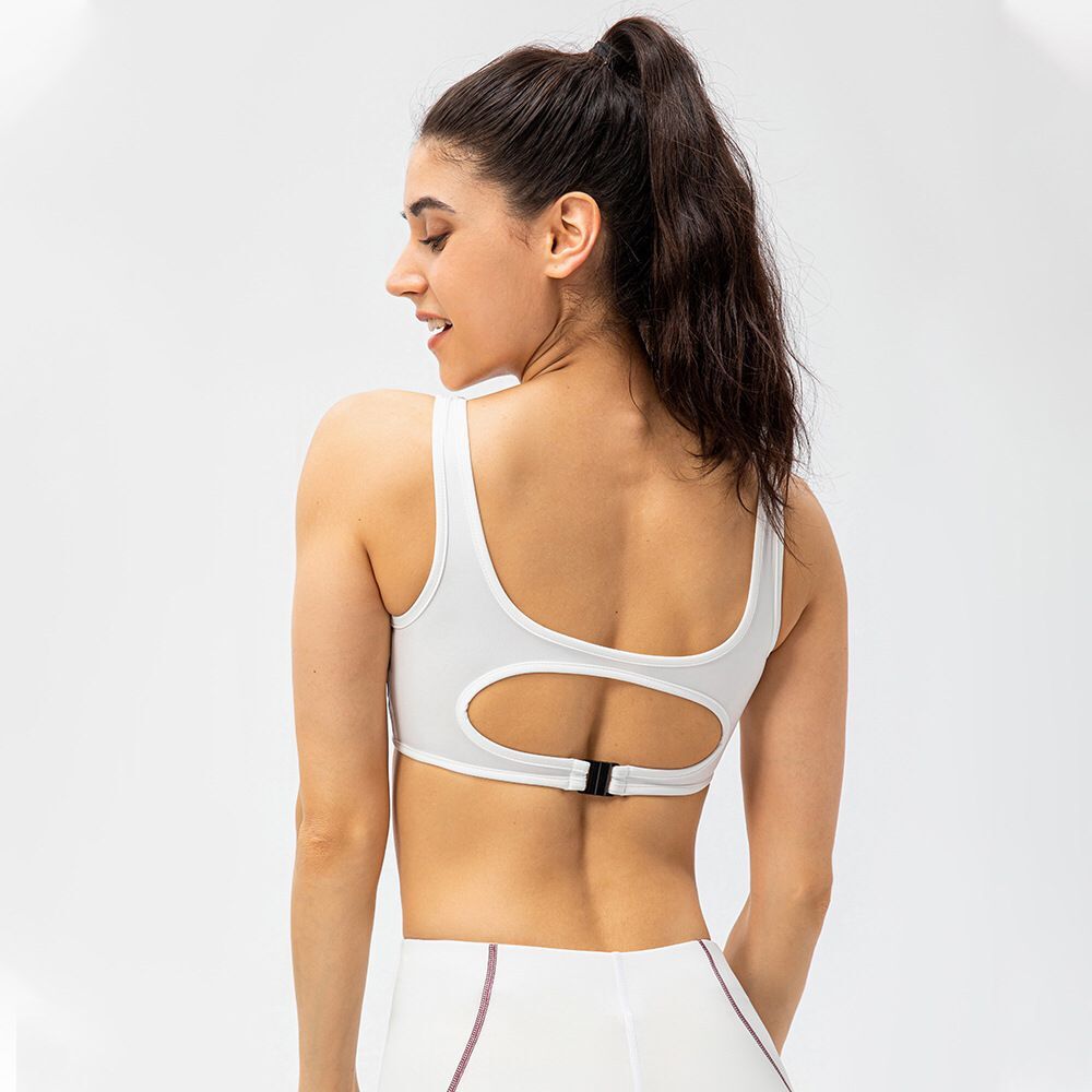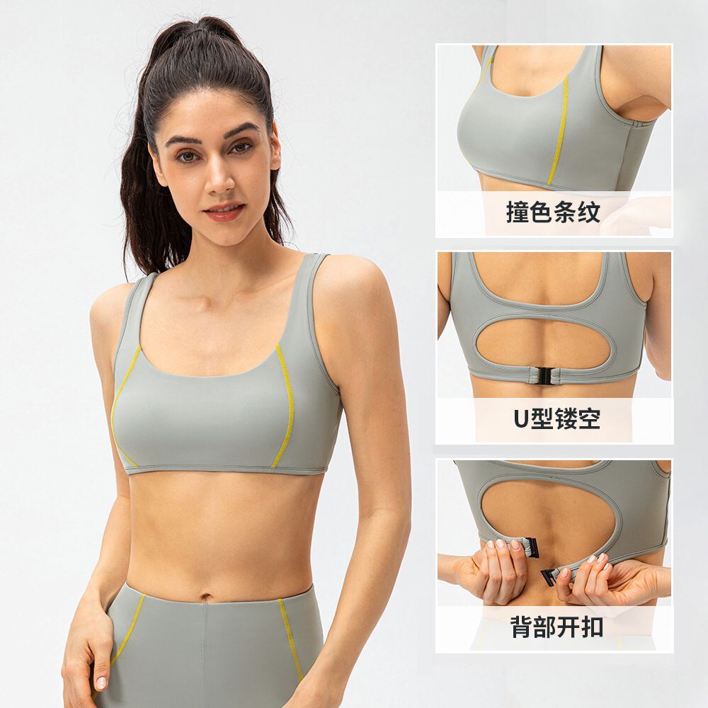 Spring And Summer Women's Sports Bra Sexy Hollow Contrasting Color Yoga Bra Shockproof Running Nude Fitness Bra