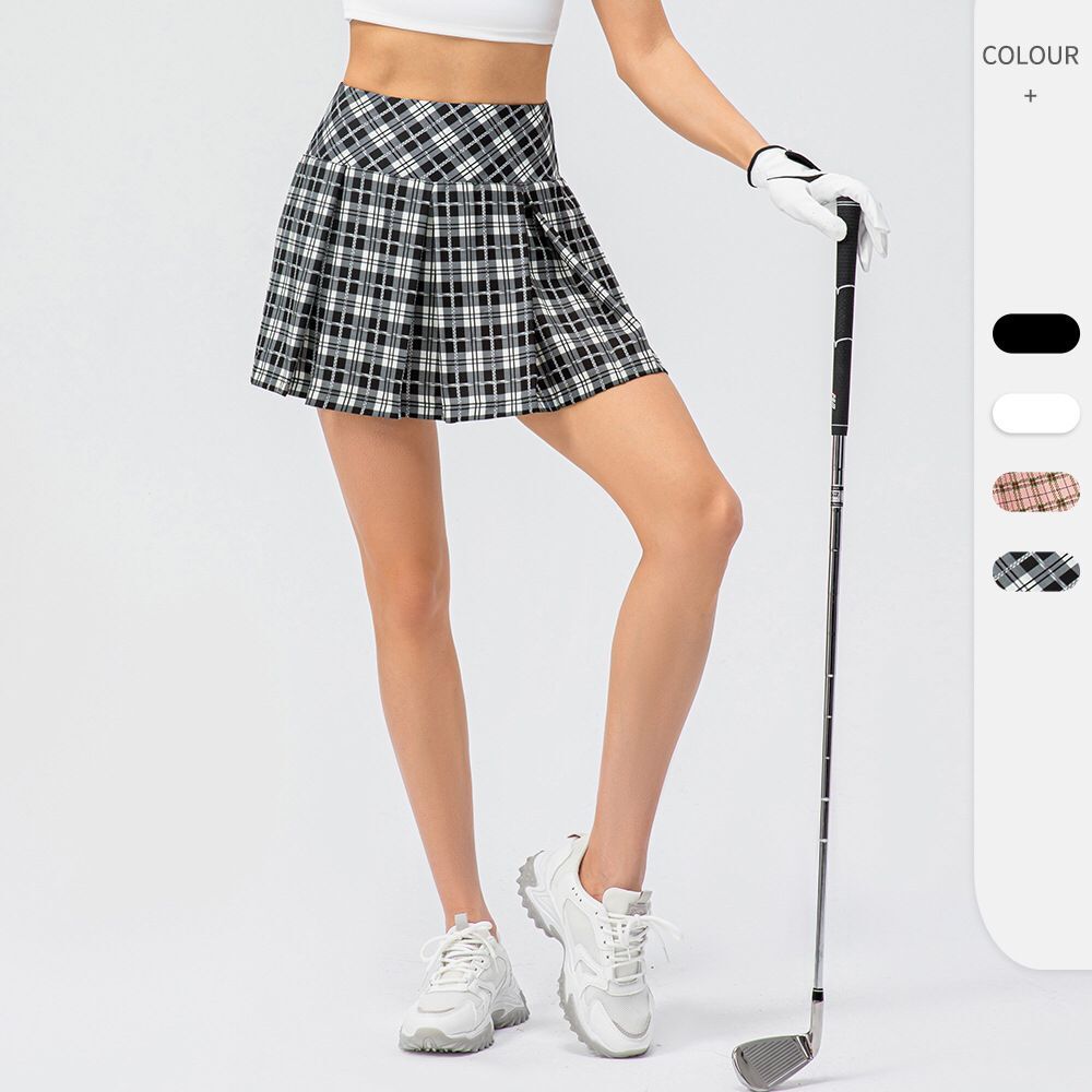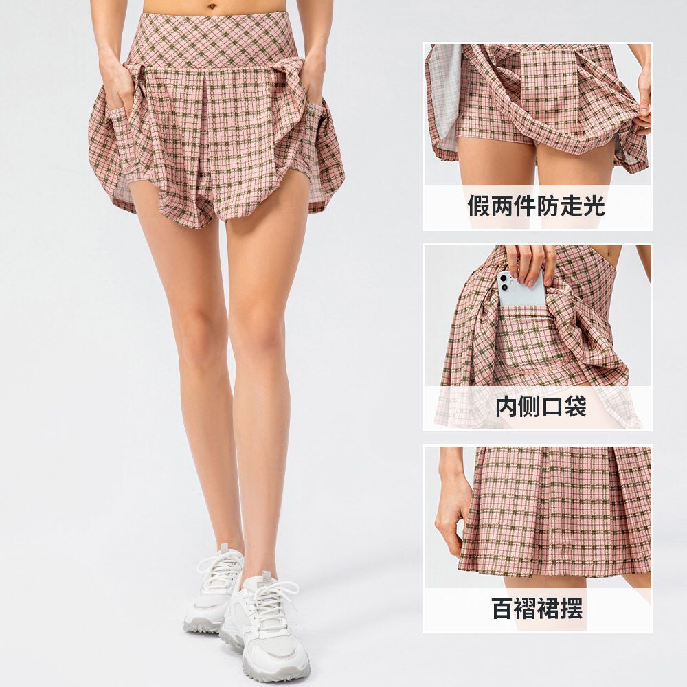 Spring And Summer Women's Plaid Sports Skirt Pleated Skirt Household Running Dance Anti-exposure Skirt Pants Yoga Tennis Skirt