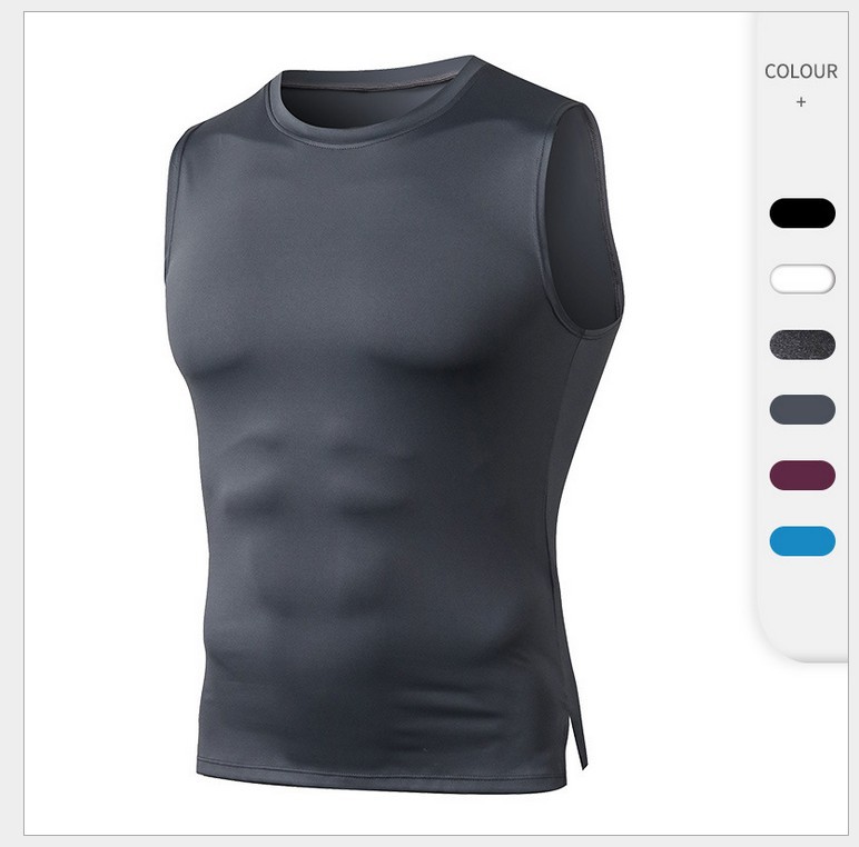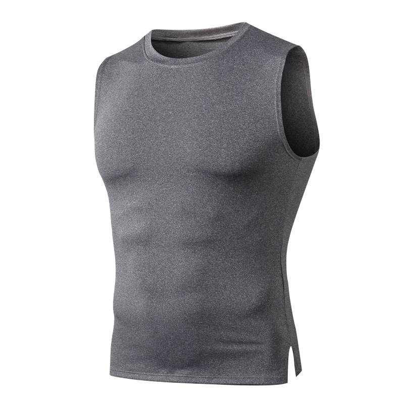 Men's Fitness Vest Tight Training Round Neck Waistcoat High Elastic Quick Dry Sports Running Top