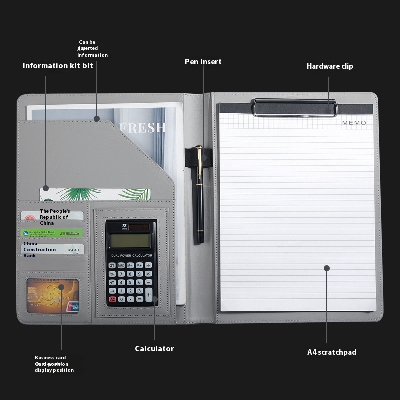 A4 Multifunctional Folder Business Sales Leather Manager Folder Pad Contract Folder Signing Book Talk Single Writing Pad