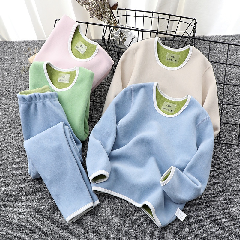 One-piece Drop-shipping Autumn And Winter Thickened Plus Velvet Children's Rabbit Plush Oli Composite Suit Boneless Thermal Underwear Set