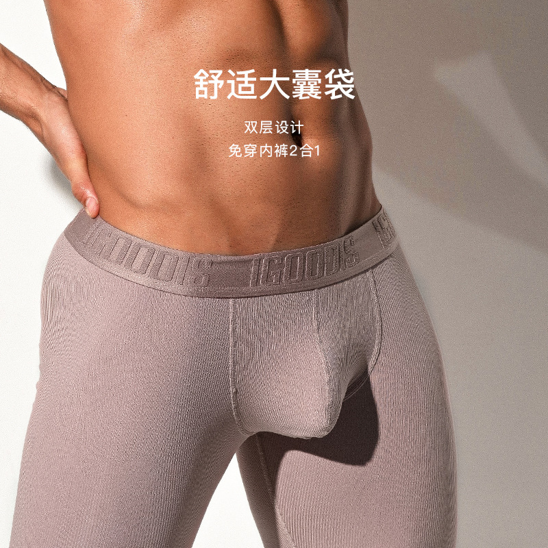 Men's Modal Autumn Pants High Elasticity2-in-1 High Elasticity Leggings Lightweight Solid Color Warm Pants Line Pants U1112