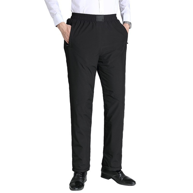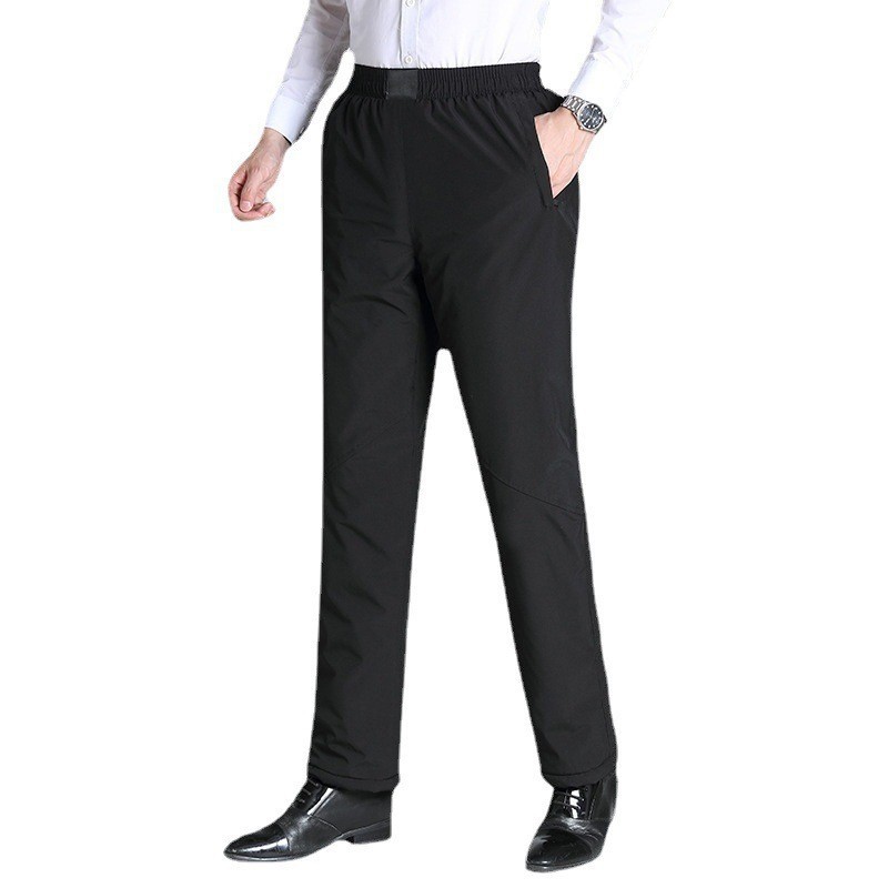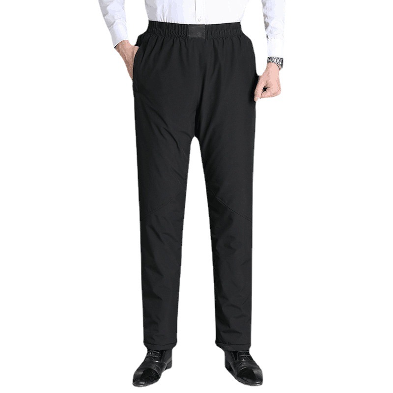 Middle-aged And Elderly Men's Winter Velvet Thickened Warm Cotton Pants With Elastic Belt High Waist Dad And Grandpa Large Size Velvet Pants