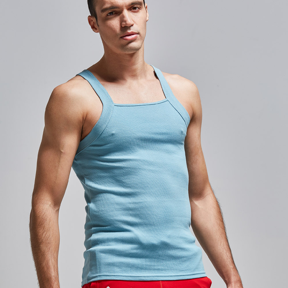 Superbody Men's Solid Color Threaded Cotton Vest Sexy High Elastic Close-fitting Sweat-absorbent Bottoming Single Vest For Men