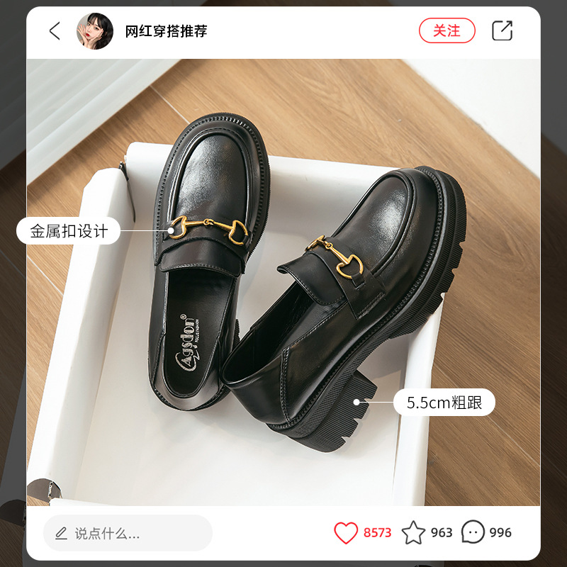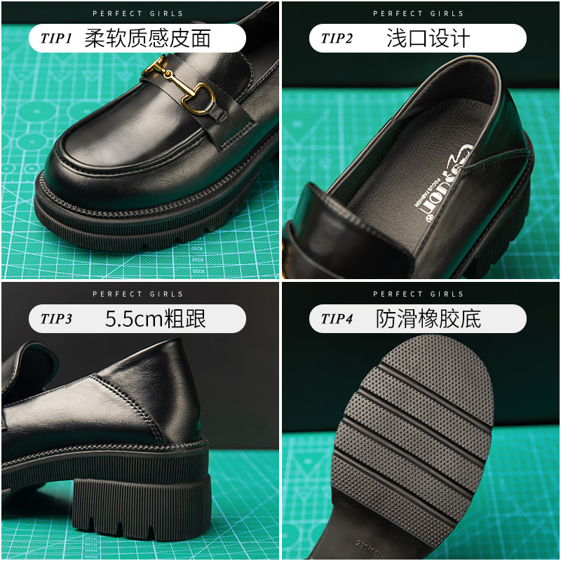 Augu Shiden Platform Thick-soled Small Leather Shoes For Women Spring And Autumn Single Shoes British College Style Loafers