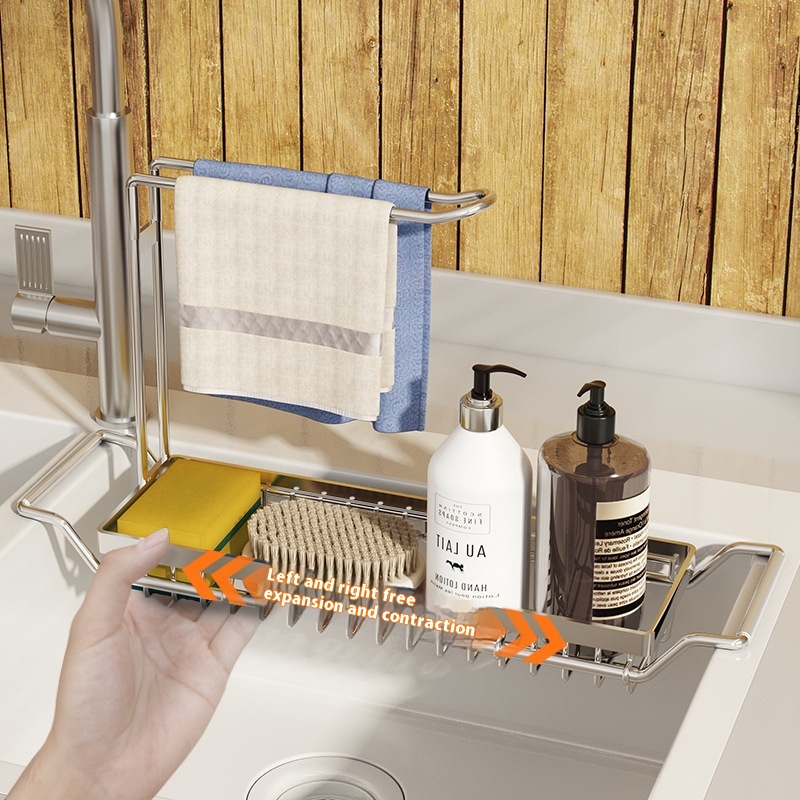 Retractable Sponge Drain Rack Kitchen Drain Rack Sink Tablecloth Rag Stainless Steel Storage Rack Black And Silver