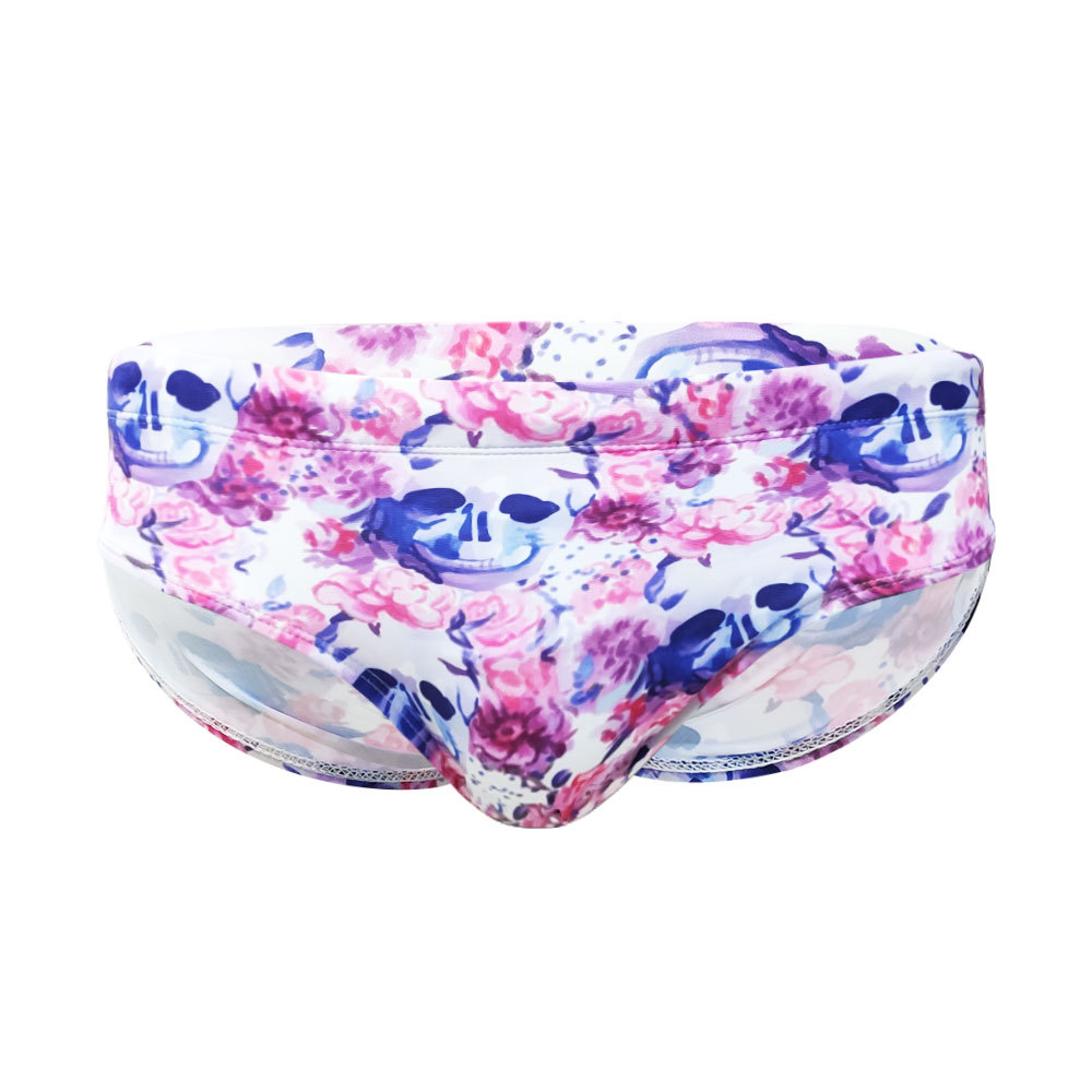 UXHEuropean And American Men's Sexy Triangle Swimming Trunks Pink Floral Skull Print Bikini Trunks
