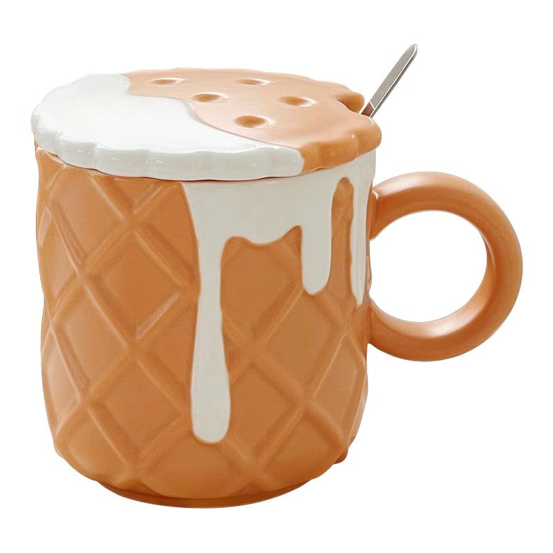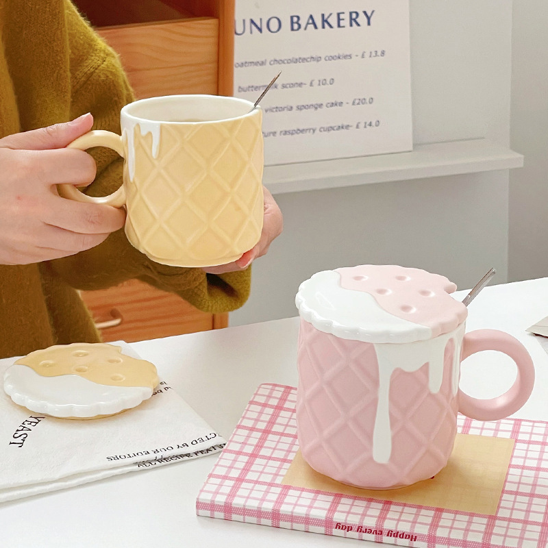 Ceramic Water Cup,Cute Mug,Couple Cup,Girl's Creative Design Breakfast Cup With Lid And Spoon For Home Use