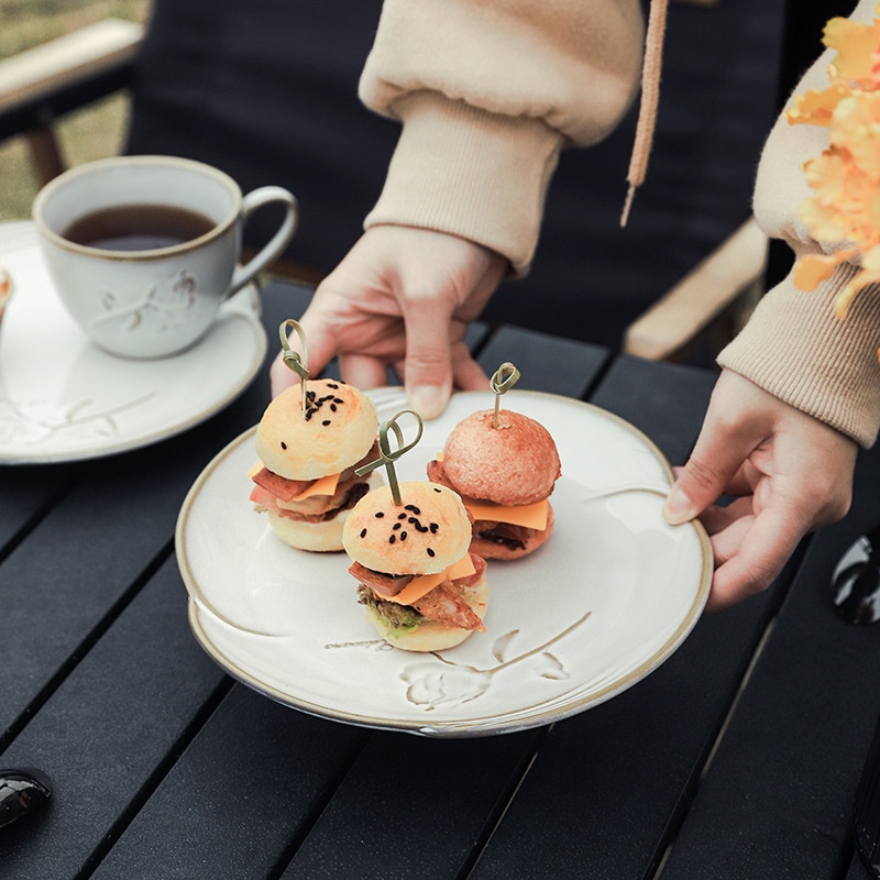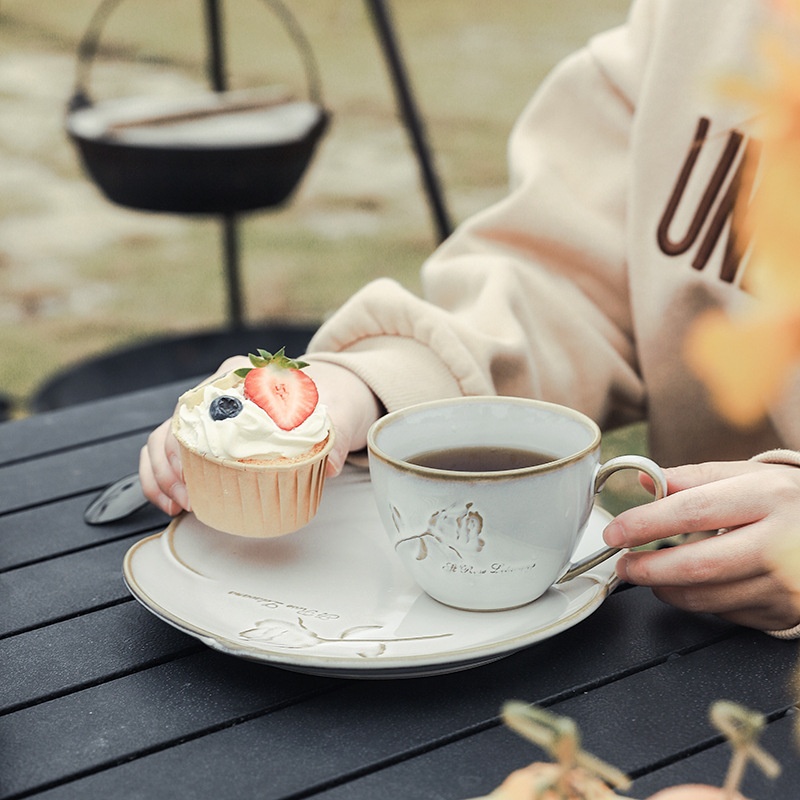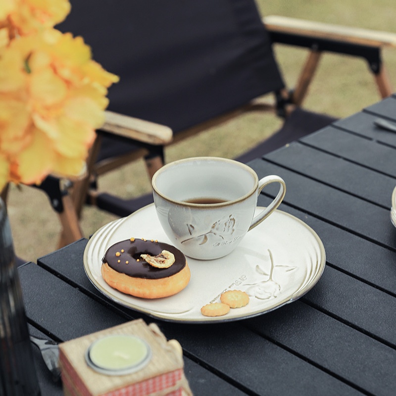 Retro French Romantic Ceramic Embossed Rose Afternoon Tea Breakfast Cake Pasta Plate Mug Plate Set