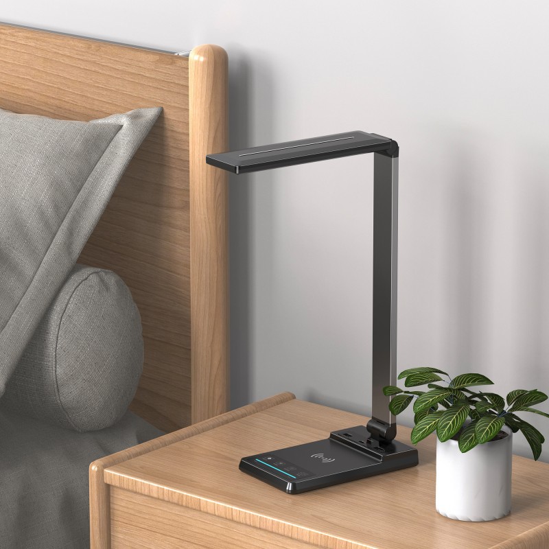 3 USBPort Wireless Fast Charging Nine Levels Of Brightness And Five Levels Of Color Temperature Folding Bedside Lamp Student Study Office Eye Protection Desk Lamp