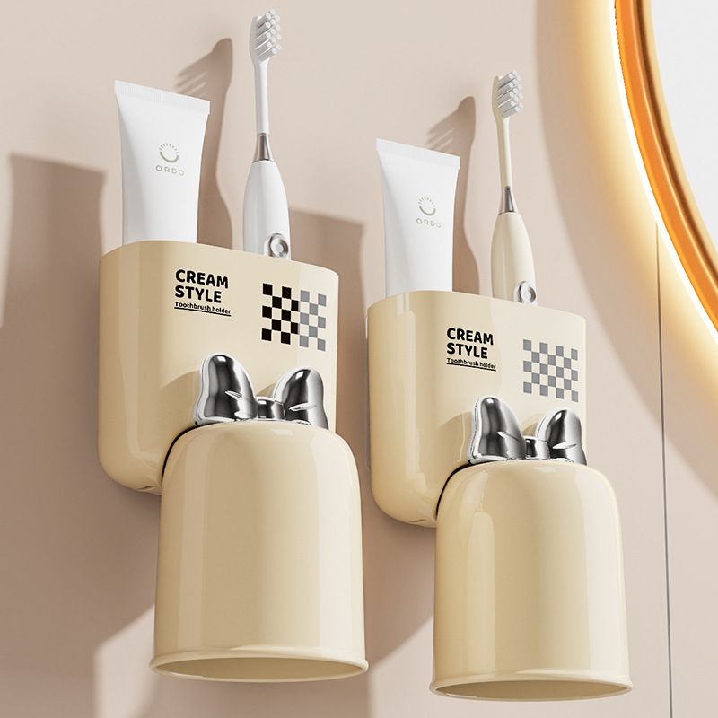 Toothbrush Rack Bathroom Punch-free Wall-mounted Mouthwash Cup Tooth Cup Storage Rack Electric Toothbrush Rack