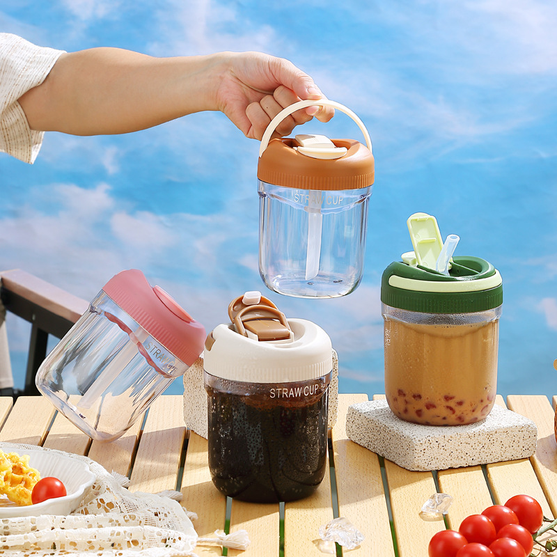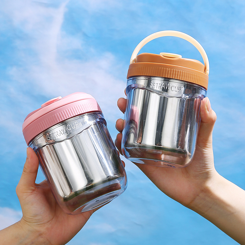 Summer Transparent Coffee Cup Portable Cup Girls Milk Tea Cup Straw Water Cup Portable Cup304 Stainless Steel