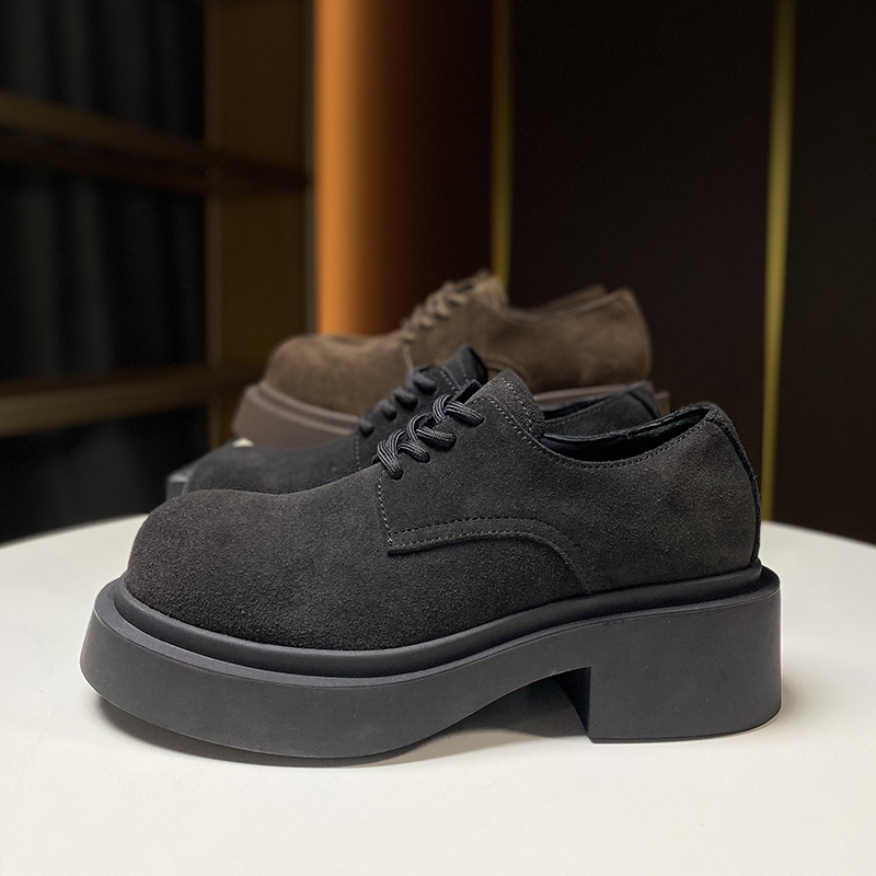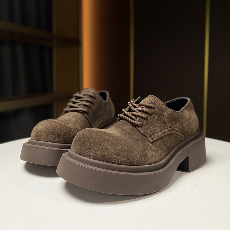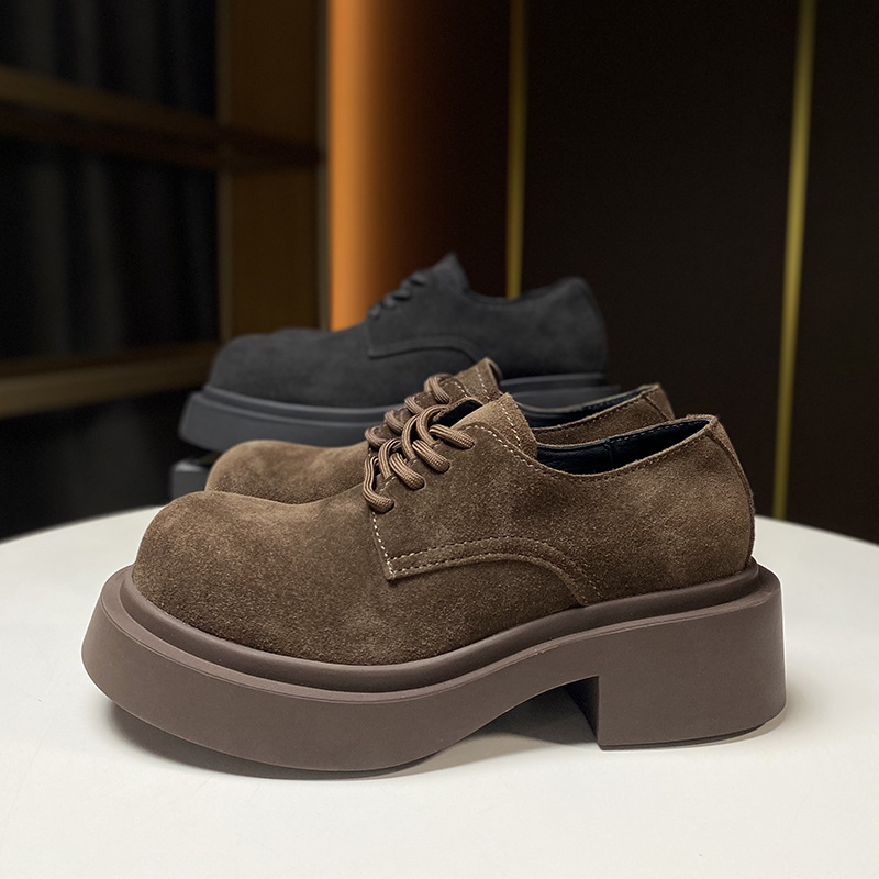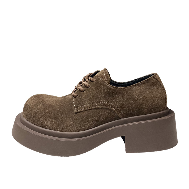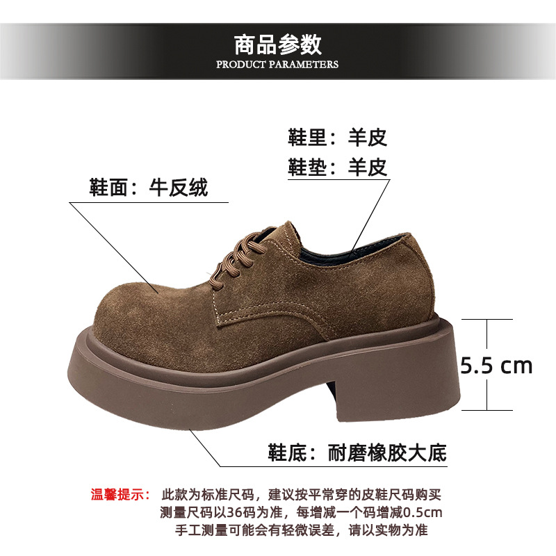 European Thick Soled Genuine Leather Shoes Spring Loafers Women's Nubuck Leather British Small Leather Shoes Mickey Women's Shoes
