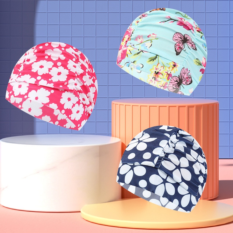 Fashion Color Pleated Adult Comfortable No Cut Hair Long Hair Solid Color Large Cloth Swimming Cap Ladies