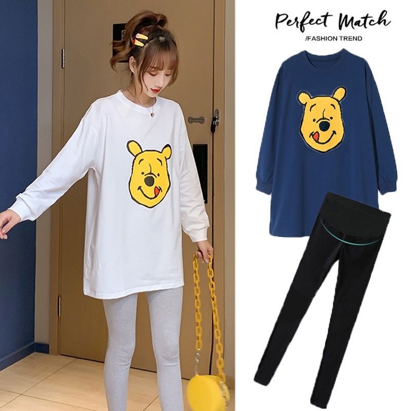 Western-style Maternity Wear,y Spring And Autumn Style, Hot Mom Fashionable Personality, Mid-length T-shirt, Bottoming Shirt, Maternity Suit, Two-piece Set