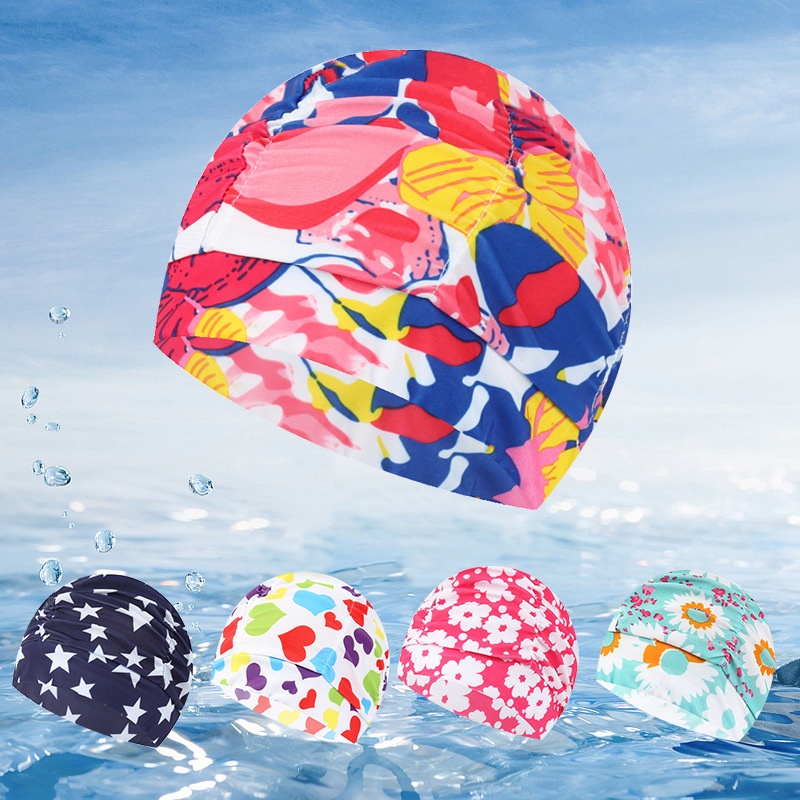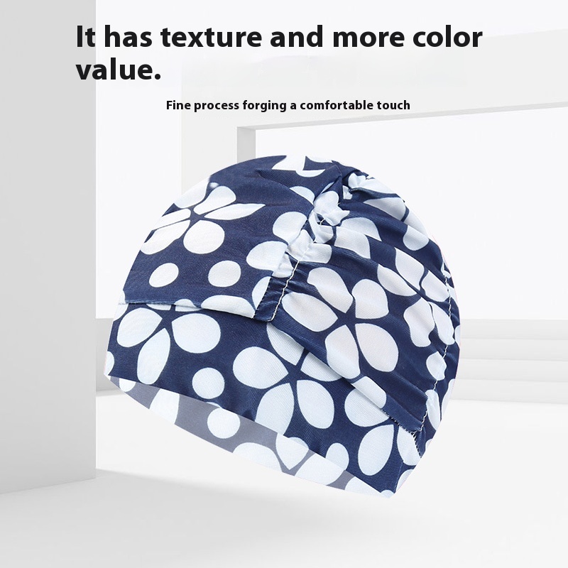 No Cut Head Fashion Pleated Color Solid Color Large Adult Female Swimming Cloth Swimming Cap