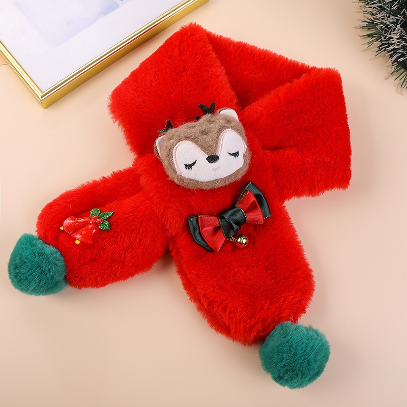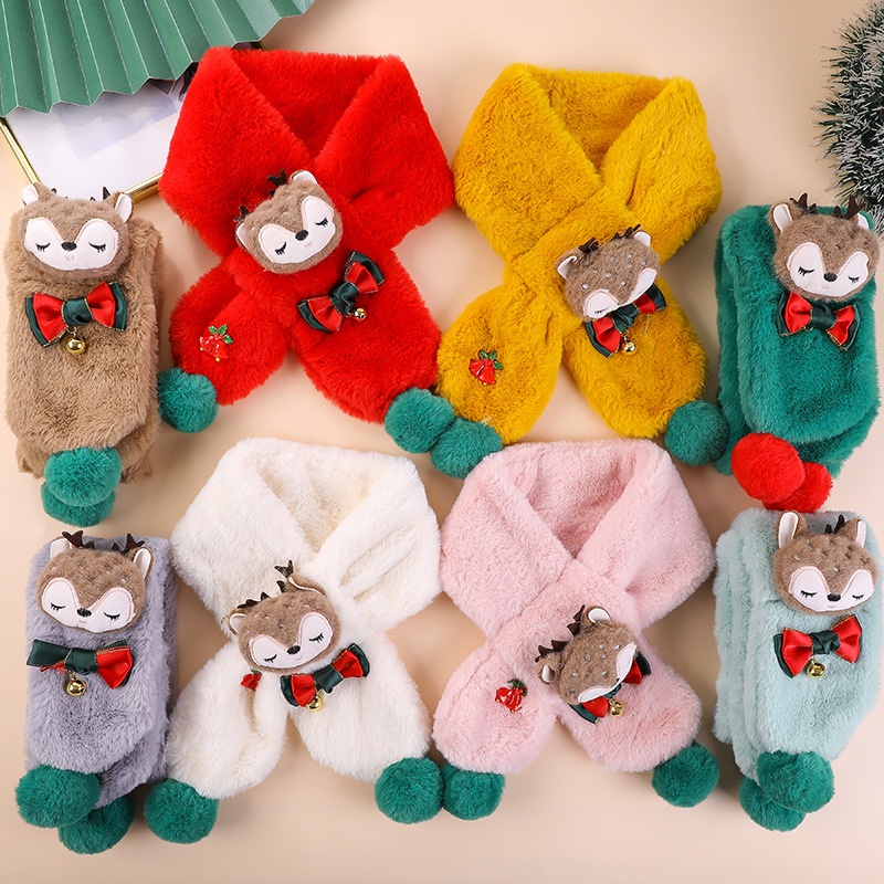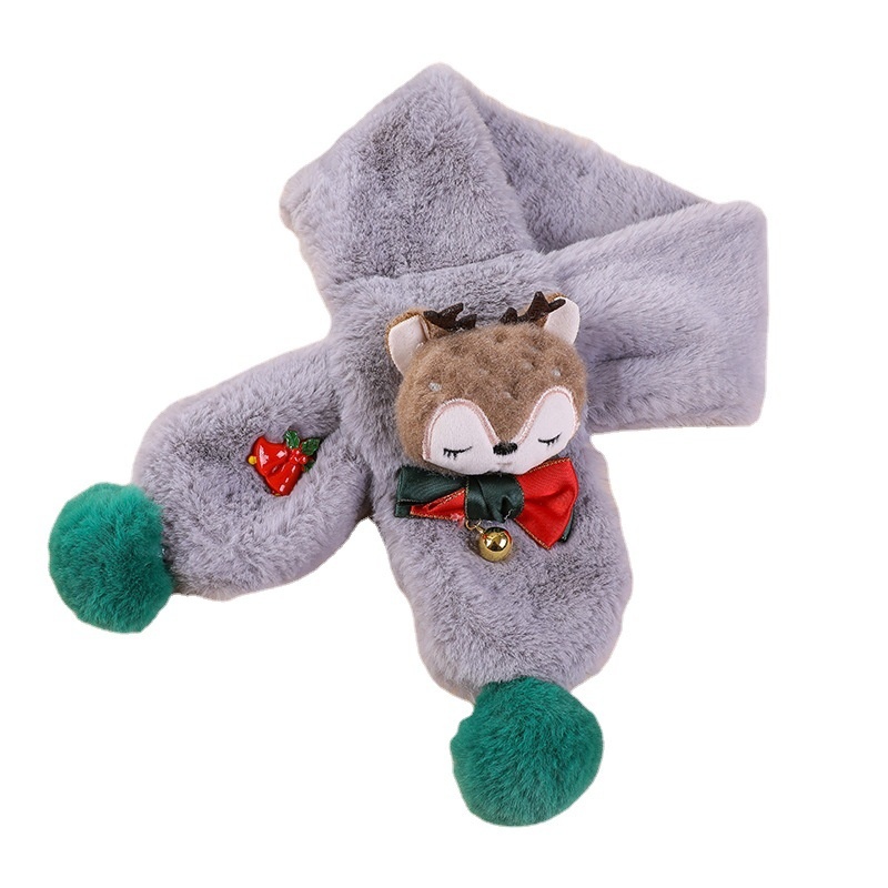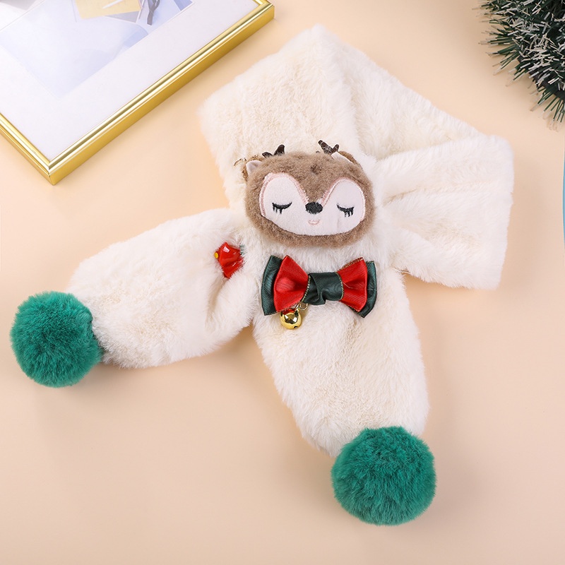 Cute Imitation Rabbit Plush Children's Scarf Autumn And Winter Double Ball Cartoon Elk Christmas Warm Scarf