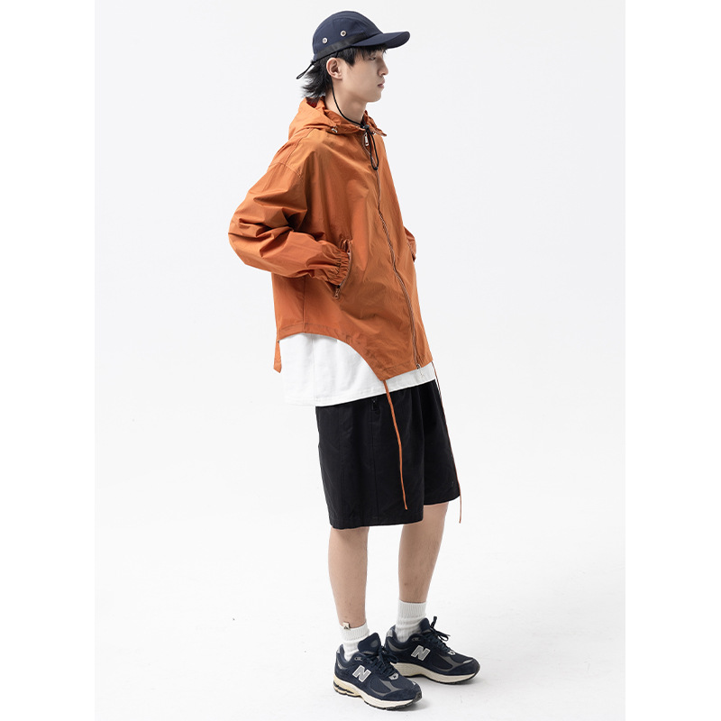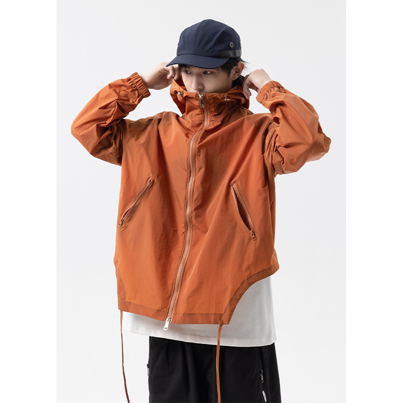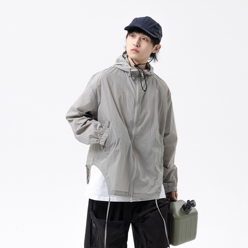 Summer Solid Color Zipper Pocket Hooded Sun Protection Clothing For Men,Japanesey Outdoor50+Sun Protection Clothing,Skin Clothing