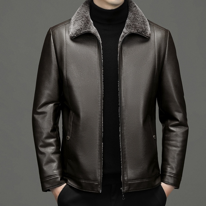 Enobani| Middle-aged And Elderly Men's Lamb Velvet Fur All-in-one Ecological Leather Jacket Warm Winter Jacket2265