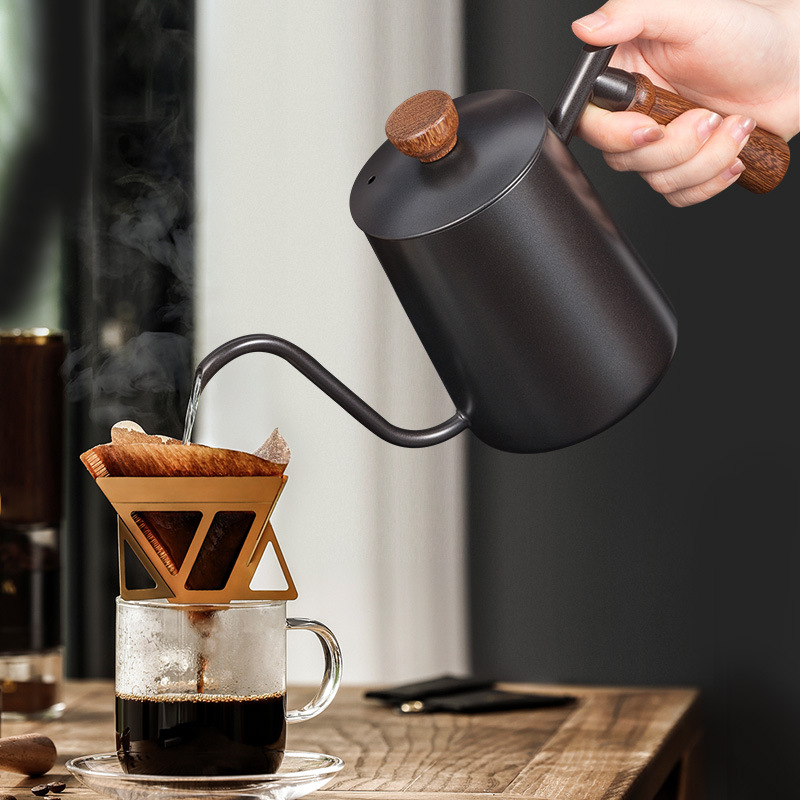 Hand Brewing Kettle600 MLSolid Wood Handle Hanging Ear Coffee Brewing Kettle304 Stainless Steel Drip Type Household Long Spout Kettle