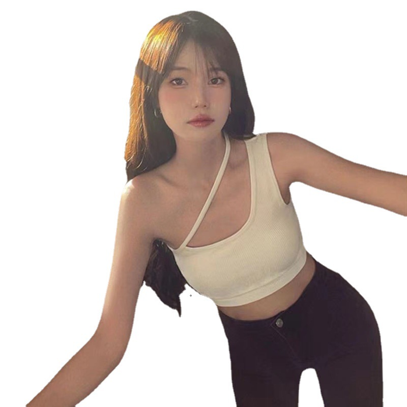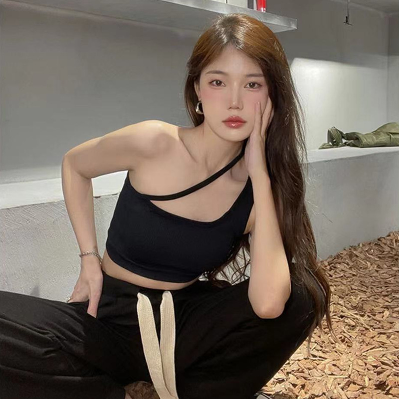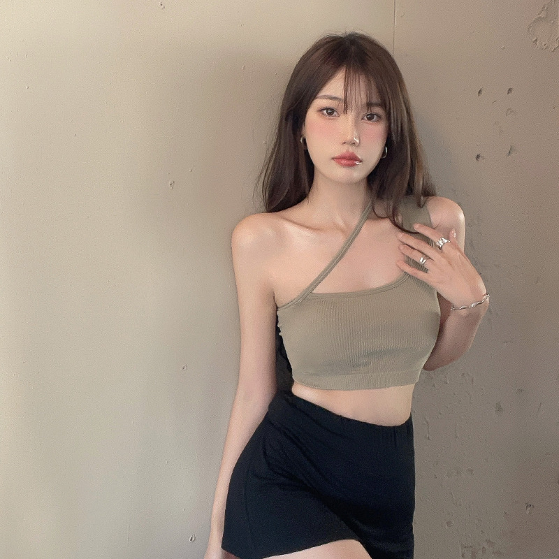 Korean Version Of The Halterneck Hottie's Sling Beautiful Back Vest Girl's Slanted Shoulder Inner Wrap Chest Strap Chest Pad Fixed Cup Underwear Base