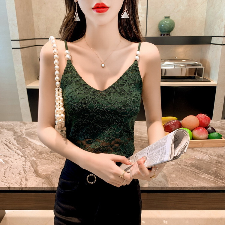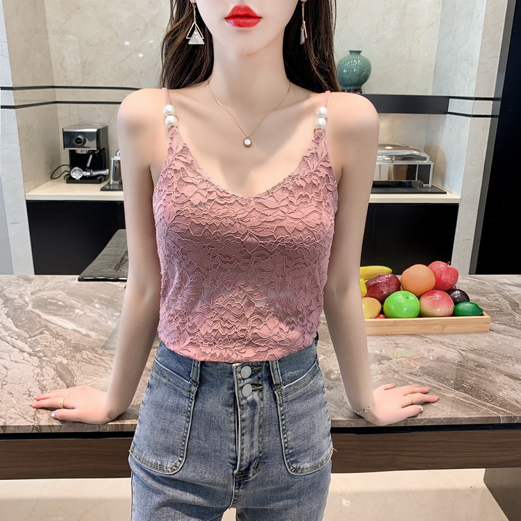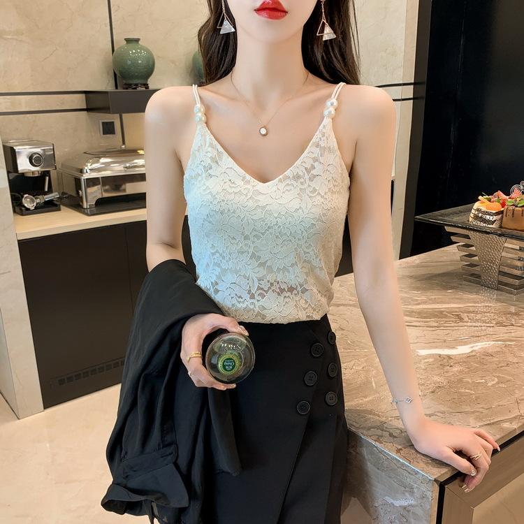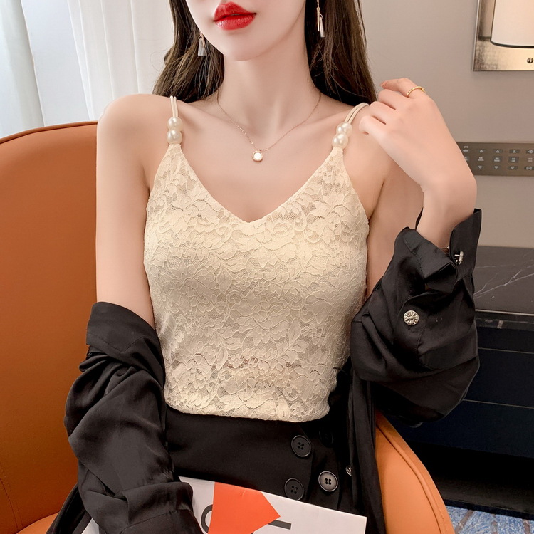 French Lace Camisole Women's Summer Outer Weary Suit Inner Design Niche Bottoming Pearl Shoulder Strap Top