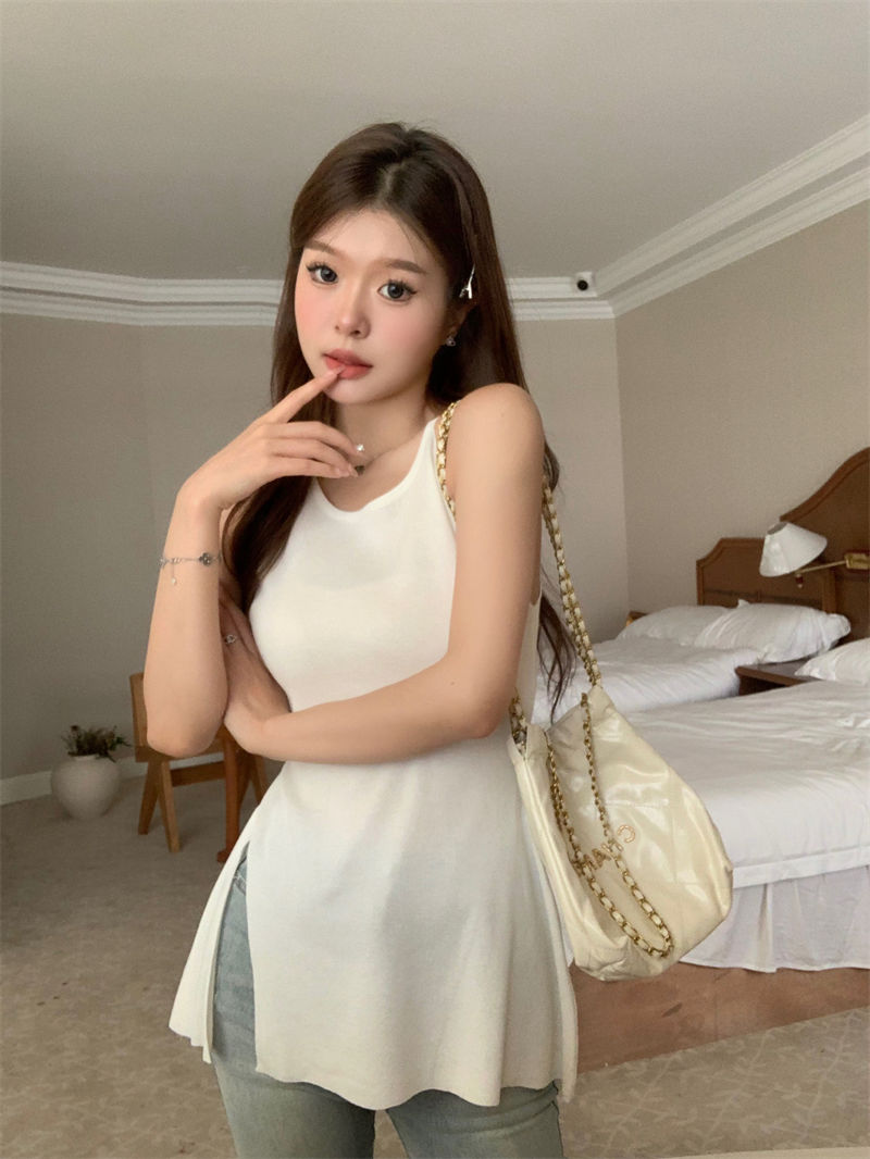 American Retro Sweet Hottie Short Vest For Women Summer Sexy Slit High Waist Suspender Wear Sleeveless Top
