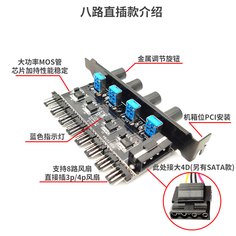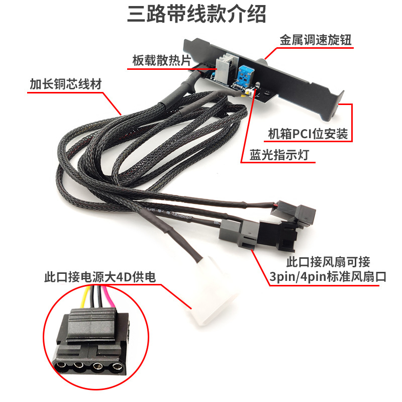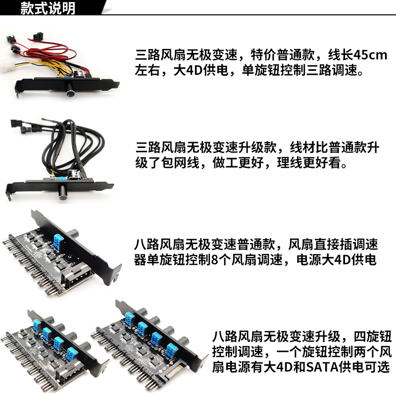 Computer Case Fan Speed Regulator Hub3pin/4pin Continuously Variable Speed Radiator Speed Reduction Controller
