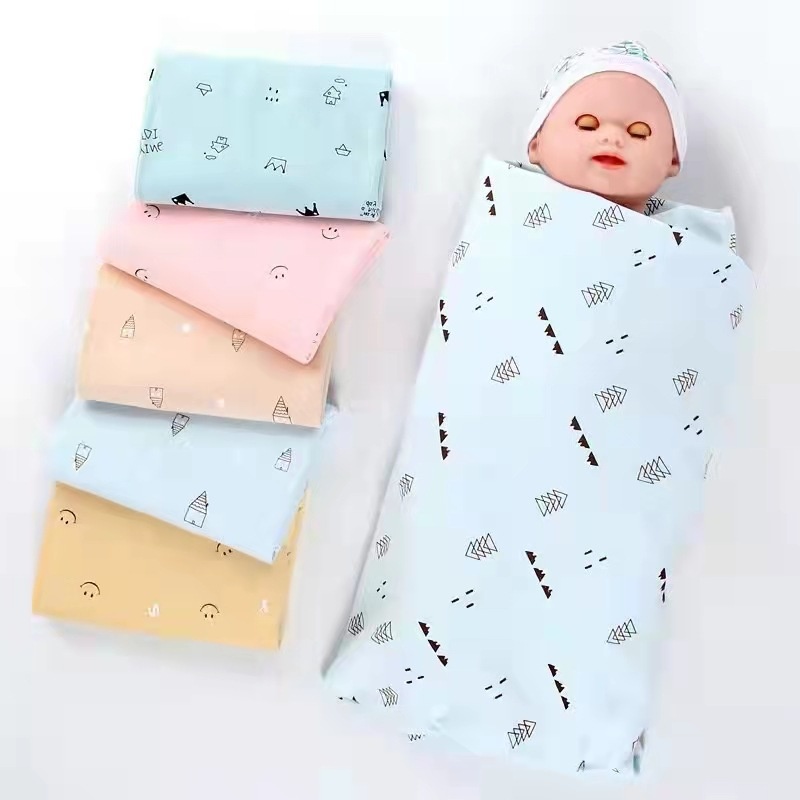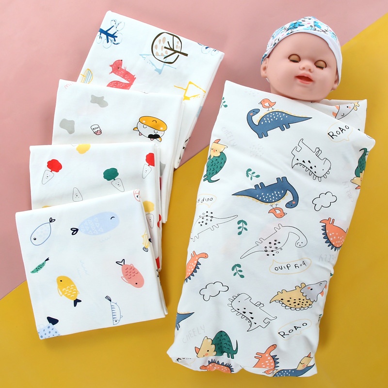 Knitted Cotton Elastic Baby Swaddling Blanket Combed Cotton Printed Gift Set Baby Swaddle