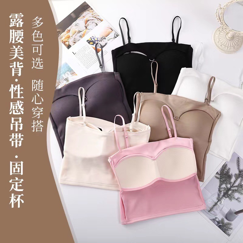 Hot Girl's Hollow Tube Top One-cup Camisole Design Sense Slimming Top Sexy Inner And Outer Wear Beautiful Back And Chest Wrapping