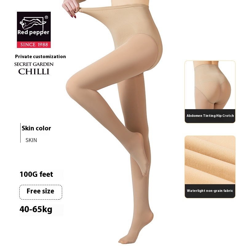 Red Pepper Autumn And Winter Water-gloss Pantyhose Silk Satin Light Leg Artifact High-waisted Belly-lifting Buttocks Micro-pressure Leggings