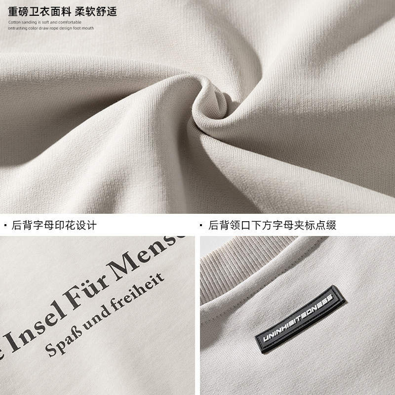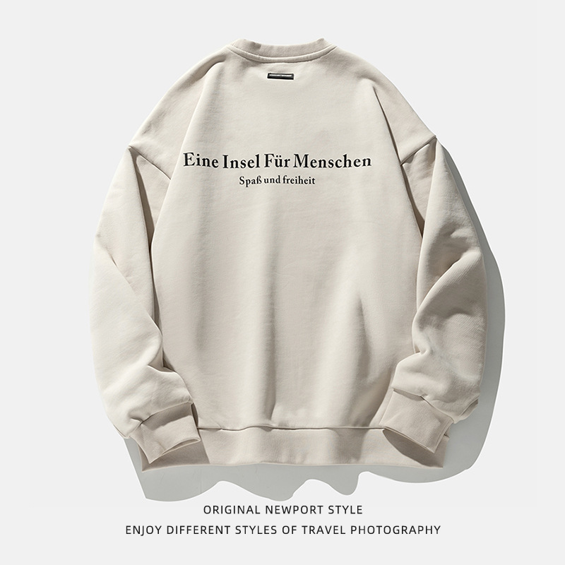 Retro American Printed Round Neck Sweatshirt For Men Spring High Street Fashion Brand Heavy Loose Couple Wear Jacket