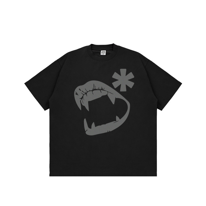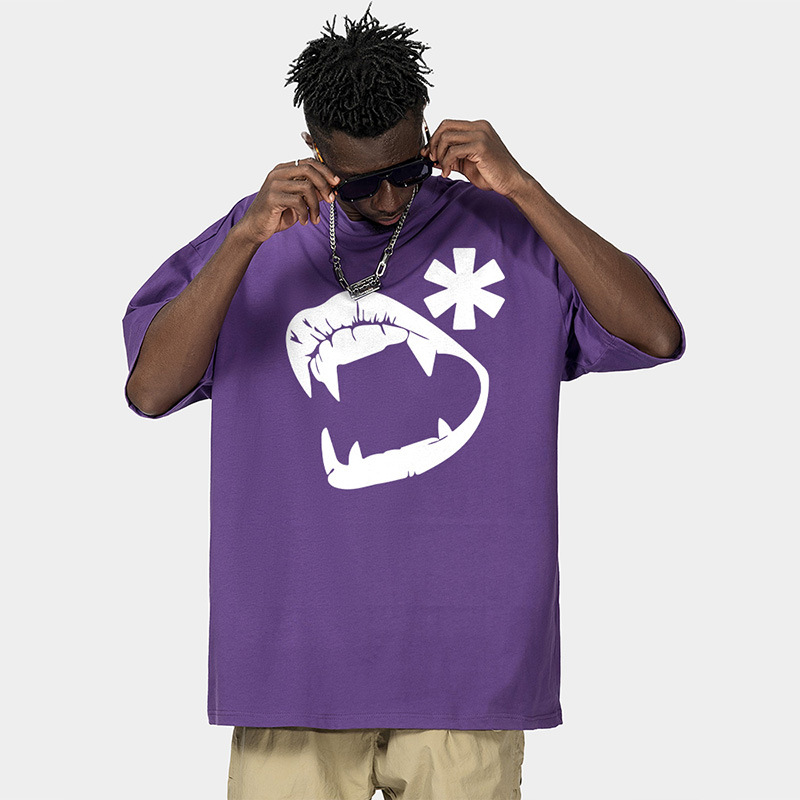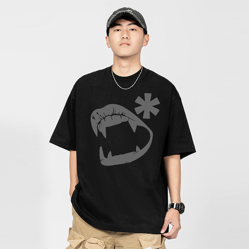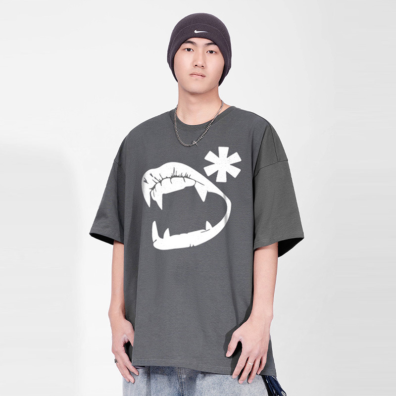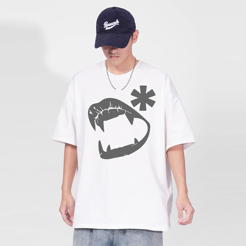 American Retro Street Funny Pure Cotton Men's T-shirt Pure Cotton Off-shoulder Oversize Niche High Street Couple Short Sleeves