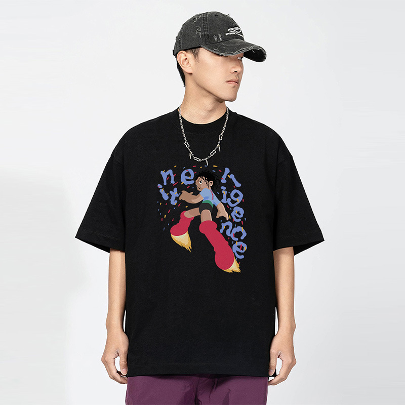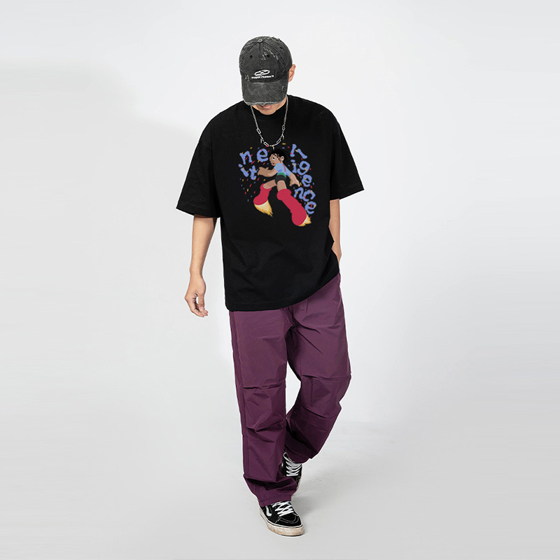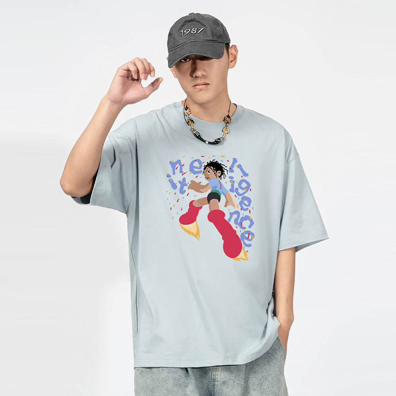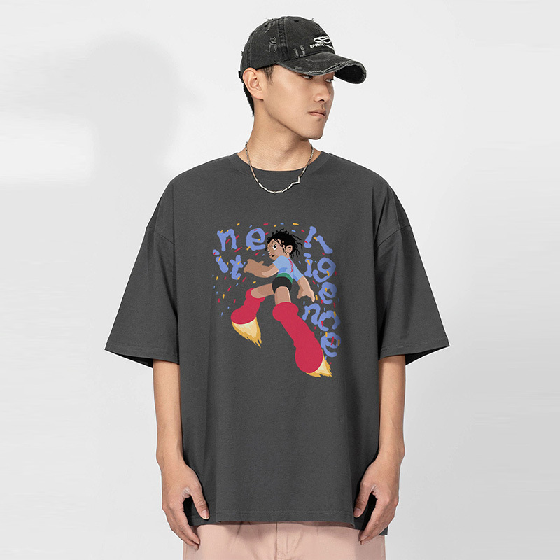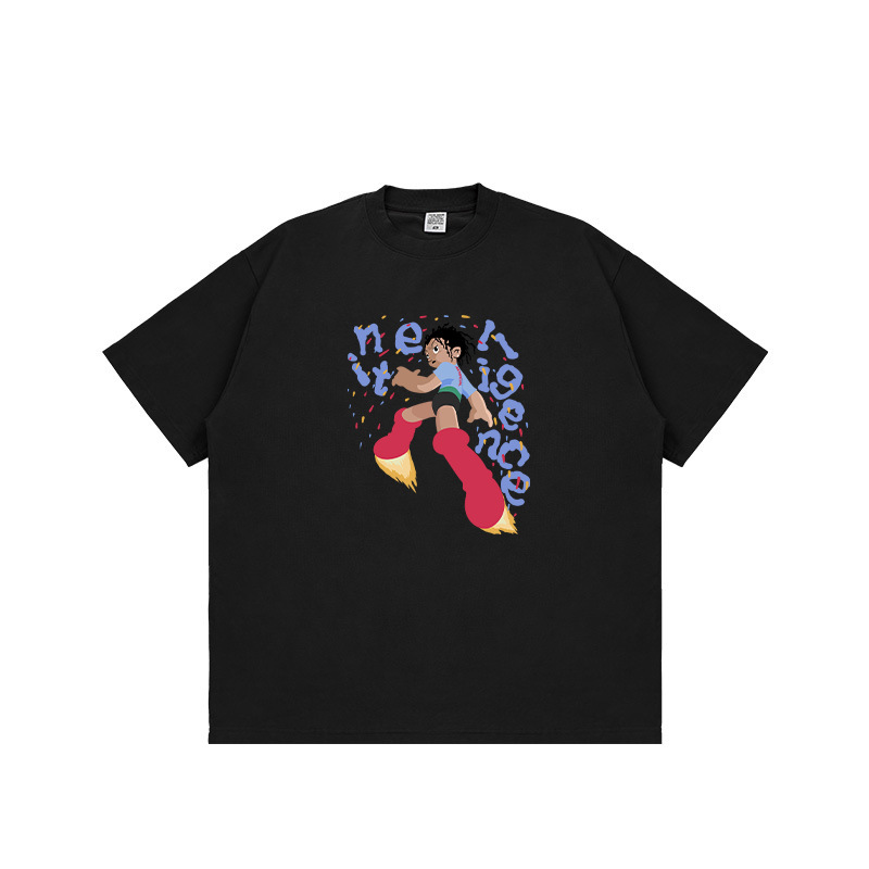 National Original Rocket Man Printed Short-sleeved T-shirt For Men And Women Heavy Cotton Summer Loose Personalizedy Brand Couple Wear