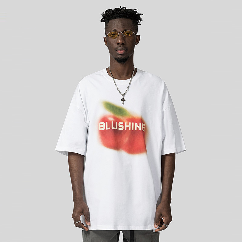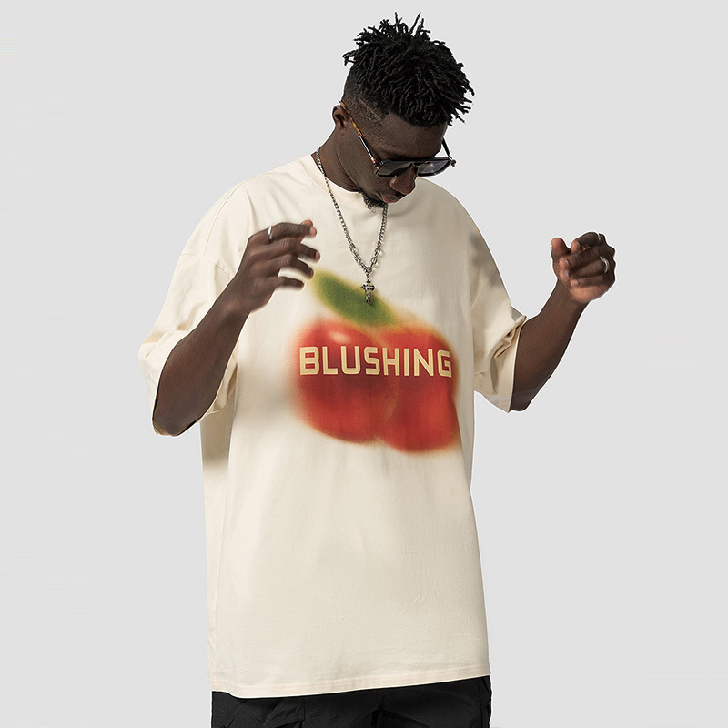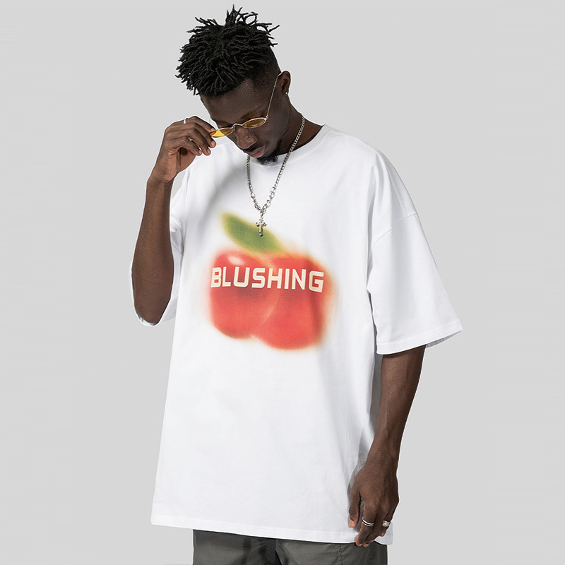 National Heavy Fruit Print Short-sleeved T-shirt For Men And Women,Loose Design,Large Size Pure Cotton High Street T-shirt