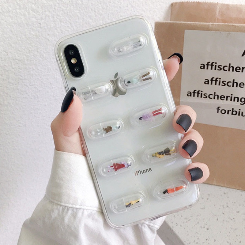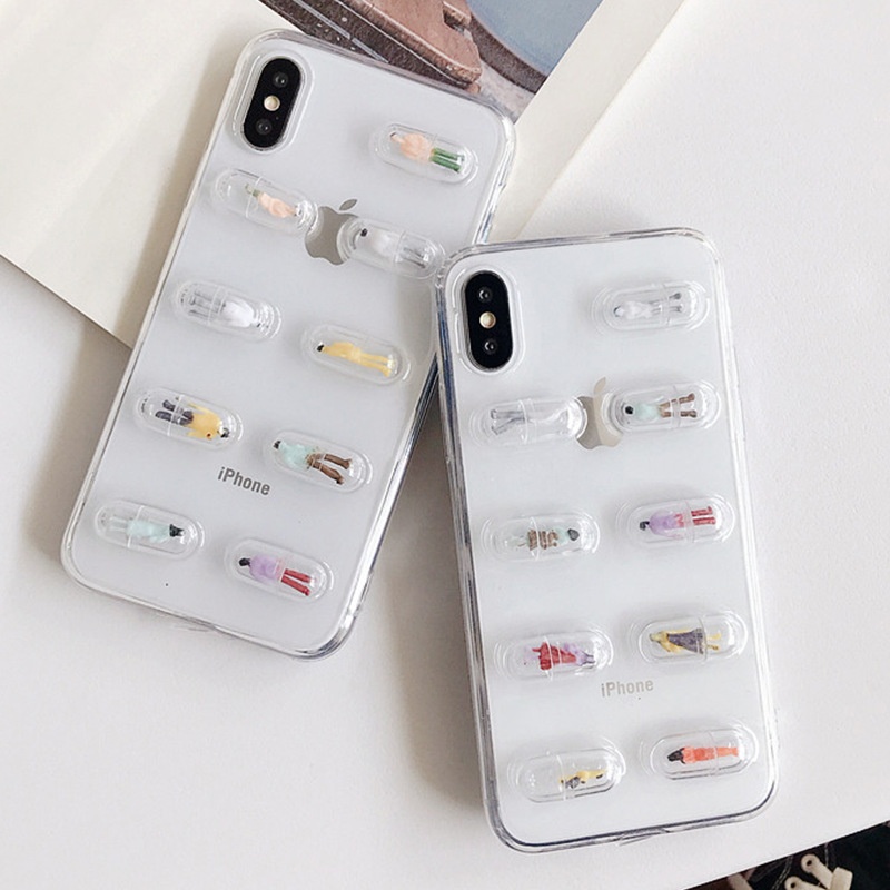 Cartoon Cute Capsule Mobile Phone Case Suitable For IPhone15/12 Apple11 All-inclusive Glue Transparent Soft Case