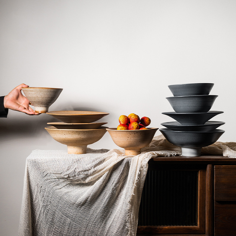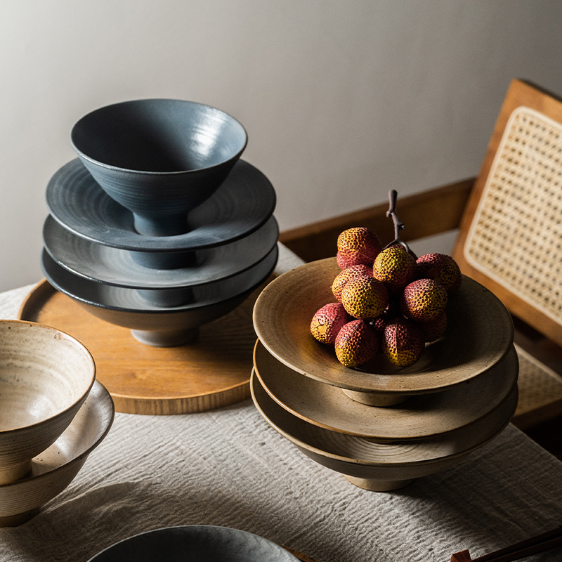 Maki-e Gold-plated High-foot Series Bowls And Plates For Home And Commercial Japanese-style Rough Pottery Thick Tableware Noodle Bowl Soup Bowl Vegetable Plate Fruit Plate