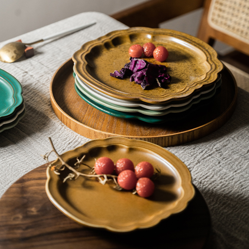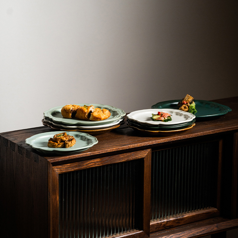 Maki-e Gold-plated Japanese-style Cloud Dish Plate Household7/9-inch Deep Plate Retro Stoare Plate Jingdezhen Ceramic Dinner Plate