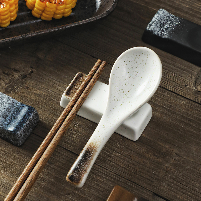 Rectangular Dual-purpose Chopstick Holder Japanese-style Household Chopstick Holder Ceramic Tableware Chopstick Holder Restaurant Chopstick Holder Spoon Pad Chopstick Holder