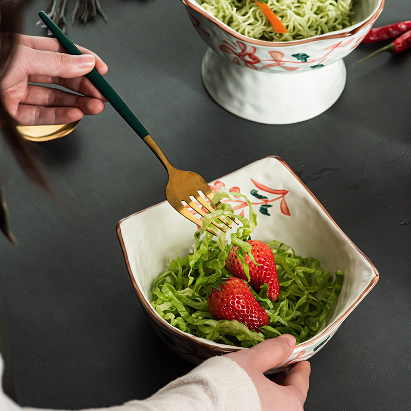 Japanese Creative Bowl Hand-painted Underglaze Color Cold Dish Dish Special-shaped Fruit Plate Household Tableware Ceramic Salad Cold Dish Bowl