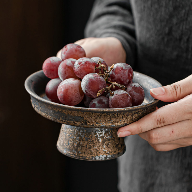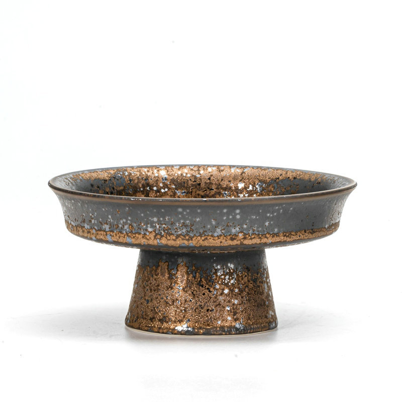 Jiuda Ware Ceramic Tall Fruit Plate Gilt Plate Household Snacks Dried Fruit Plate Hotel Restaurant Cake Tray