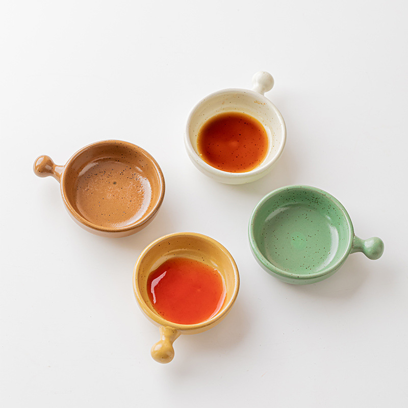 Jiutian Ware Single-handled Condiment Dish Household Small Dish Special Hotel Tableware Retro Hot Pot Restaurant Soy Sauce Vinegar Dish