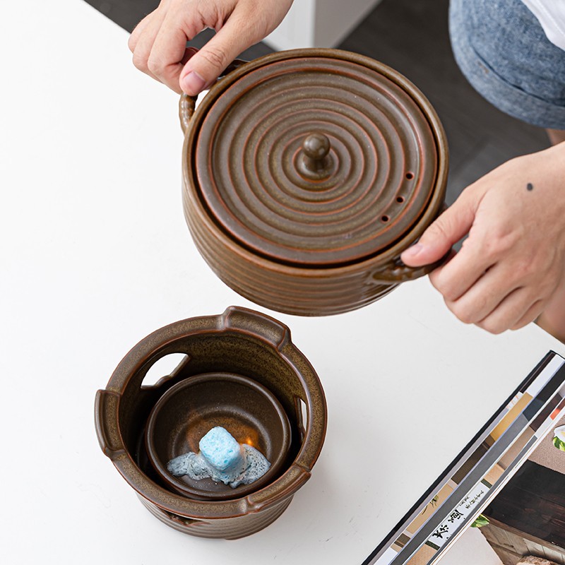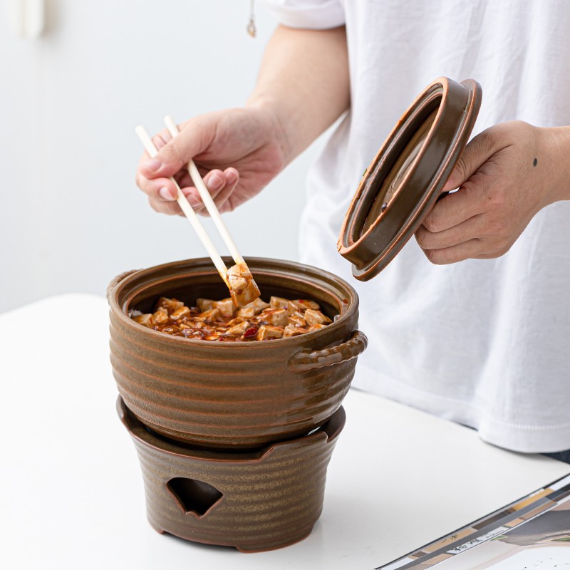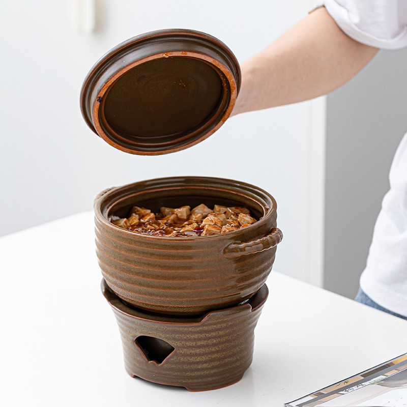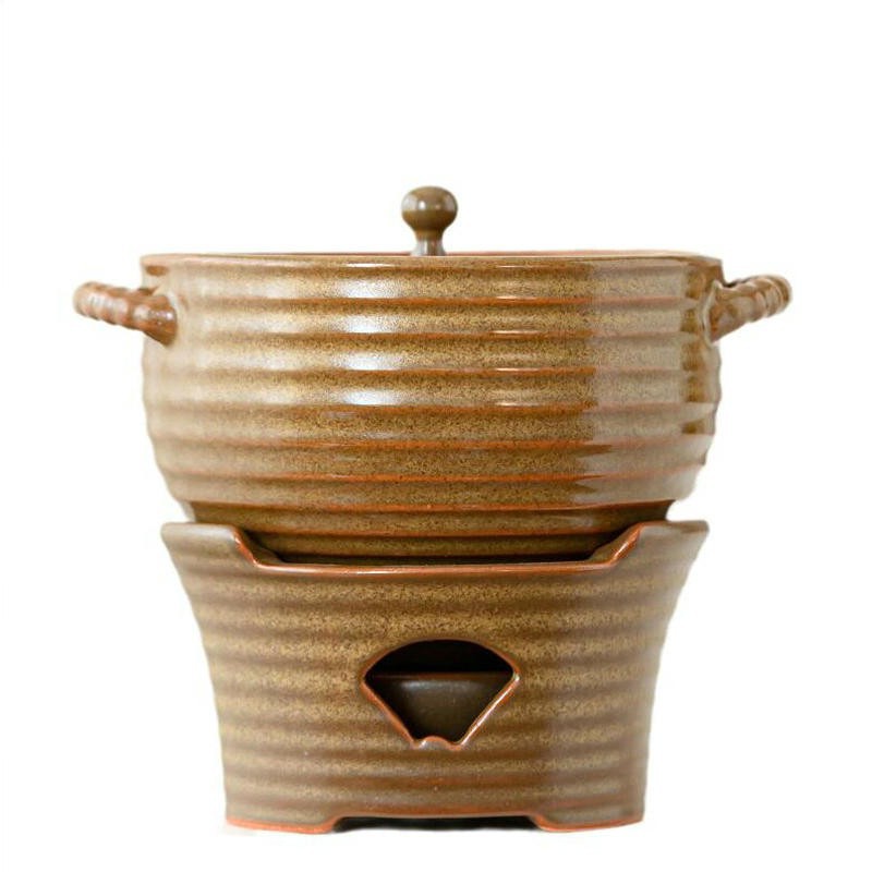 Japanese Double-eared Ceramic Soup Pot Alcohol Stove Hotel Tableware Retro Soup Pot Household Casserole Small Hot Pot