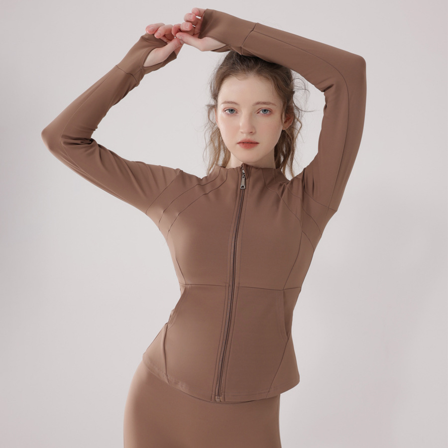 Style Velvet Thickened Zipper Jacket For Autumn And Winter,Slim Fit,High Elasticity,Sports Quick-drying Outdoor Long-sleeved Yoga Wear For Women