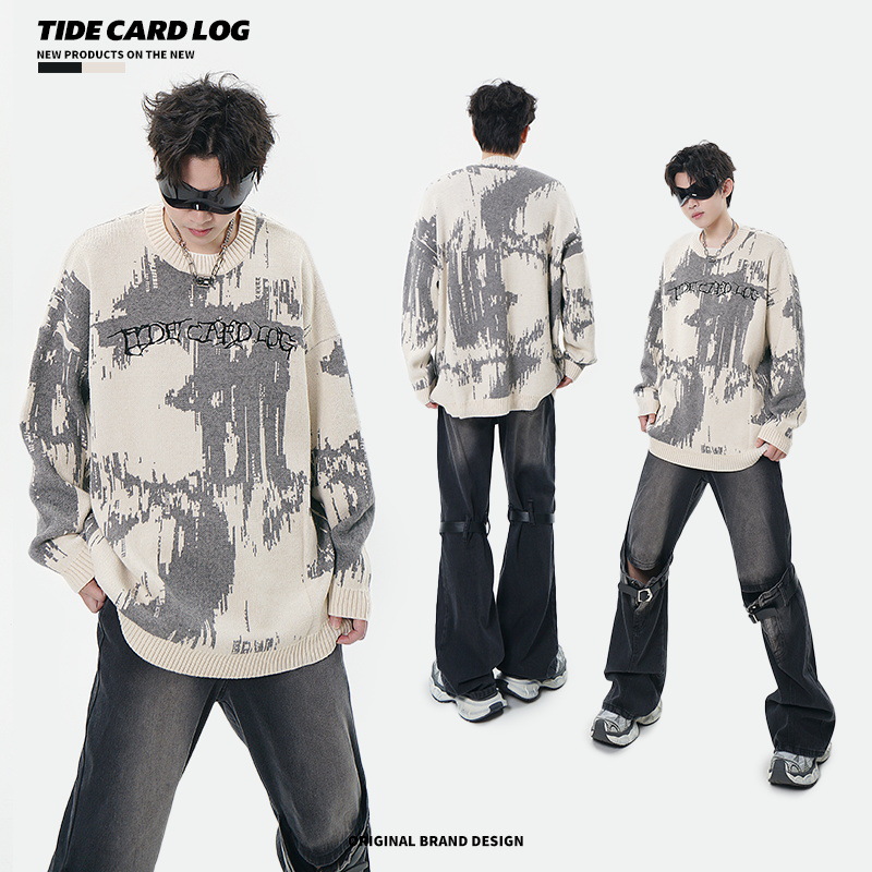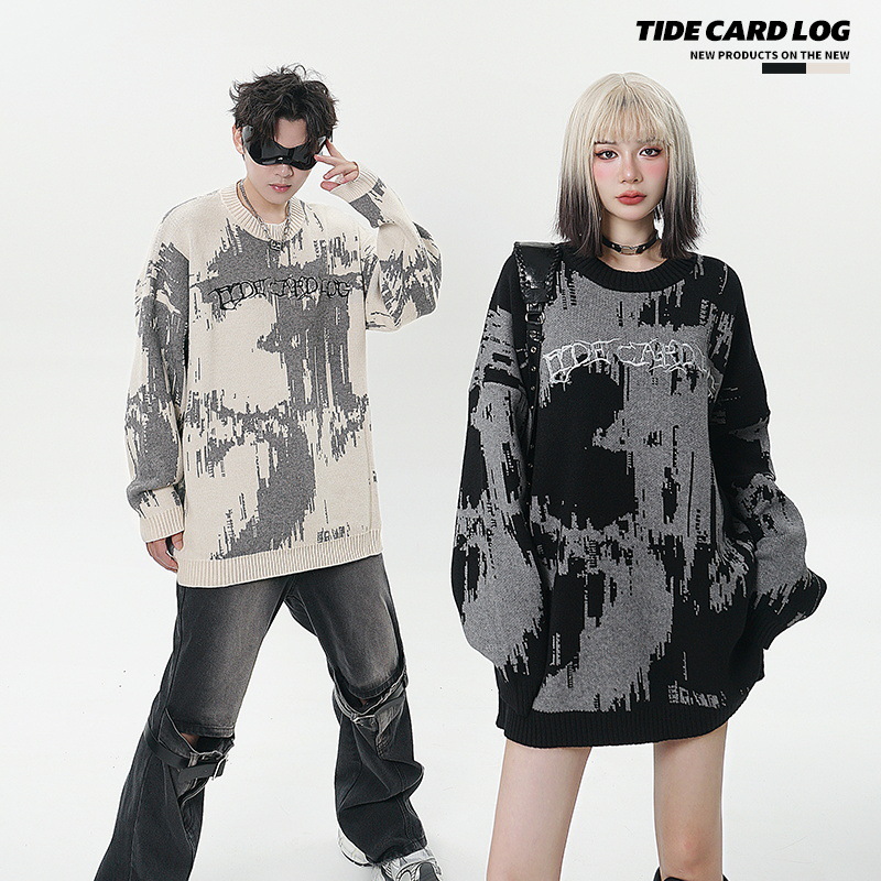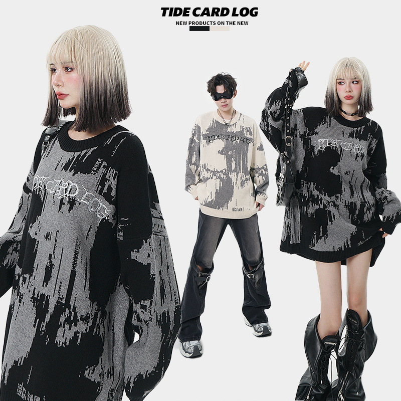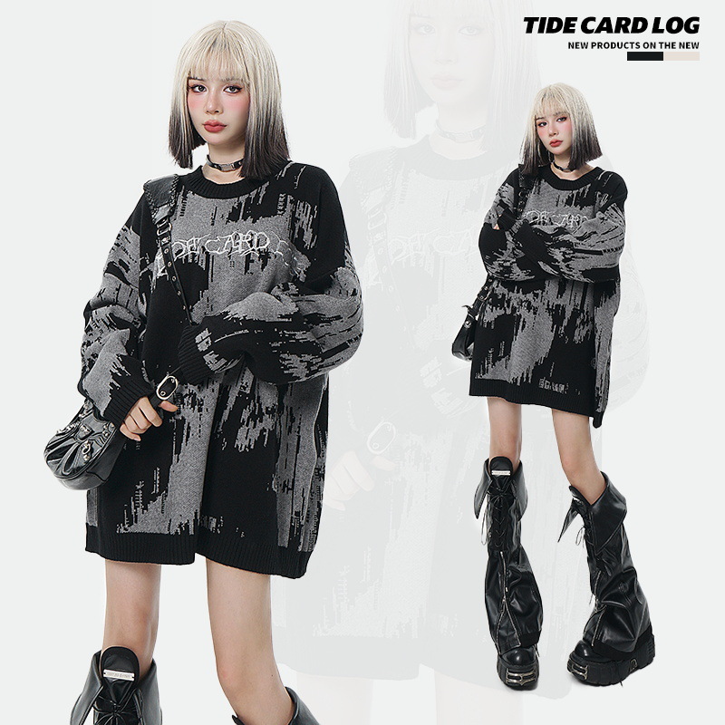 TIDECARDLOG|High Street Dark Style Embroidered Letter Sweater Sweater Couple Style Loosey Brand Long Sleeves
