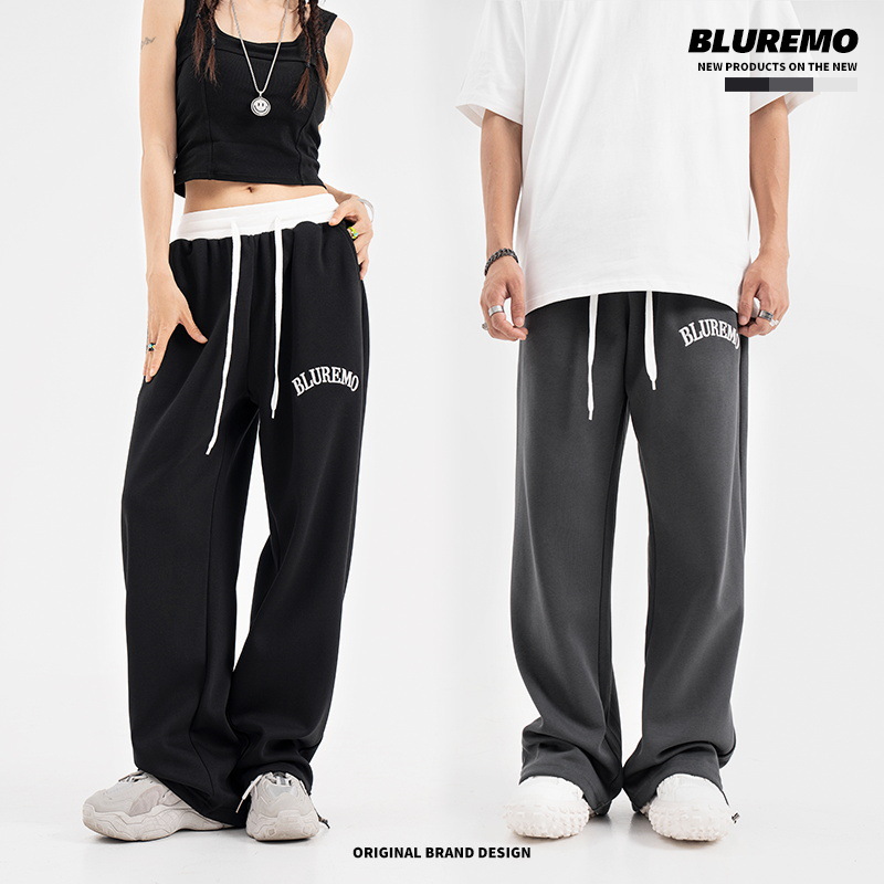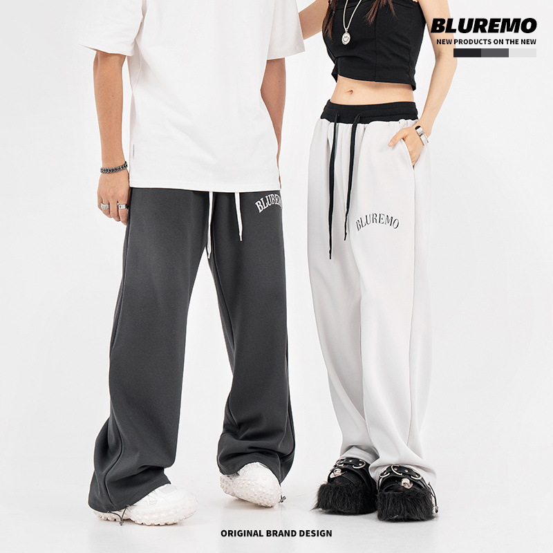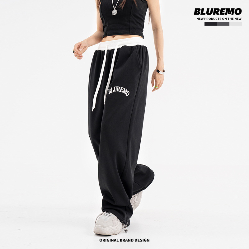 BLUREMO|American High Street Casual Loose Straight Elastic Thin Drawstring Hottie Sweatpants With Letter Embroidery