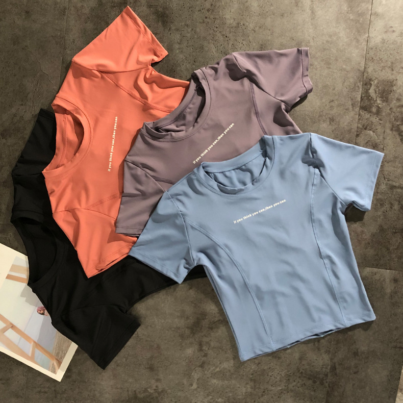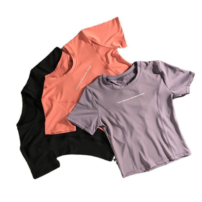 Fitness Wear Short-sleeved Women's Tight-fitting Short Sexy Sports Top Slimming Thin Yoga Wear Short-sleeved Quick-drying T-shirt Summer