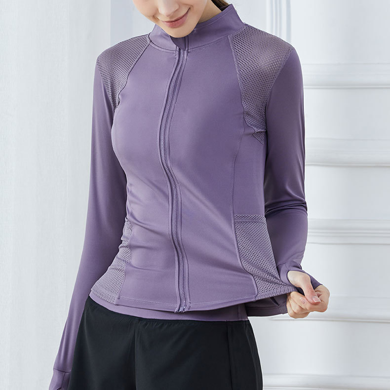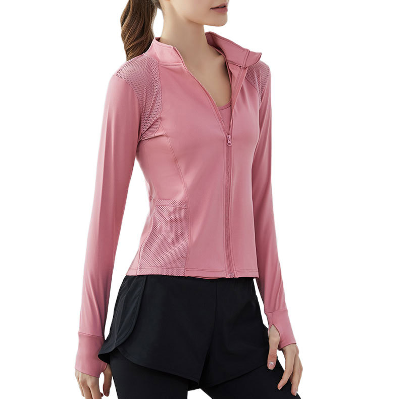 Stand Collar Fitness Clothing Sports Jacket Women's Training Running Quick-drying Zipper Cardigan Long-sleeved Gym Yoga Clothing