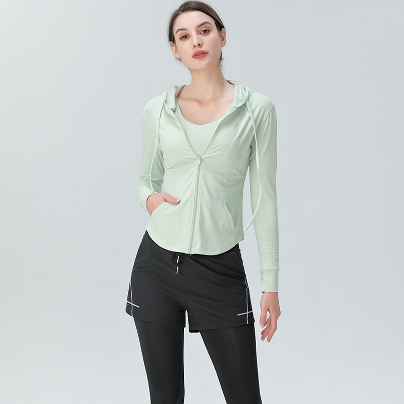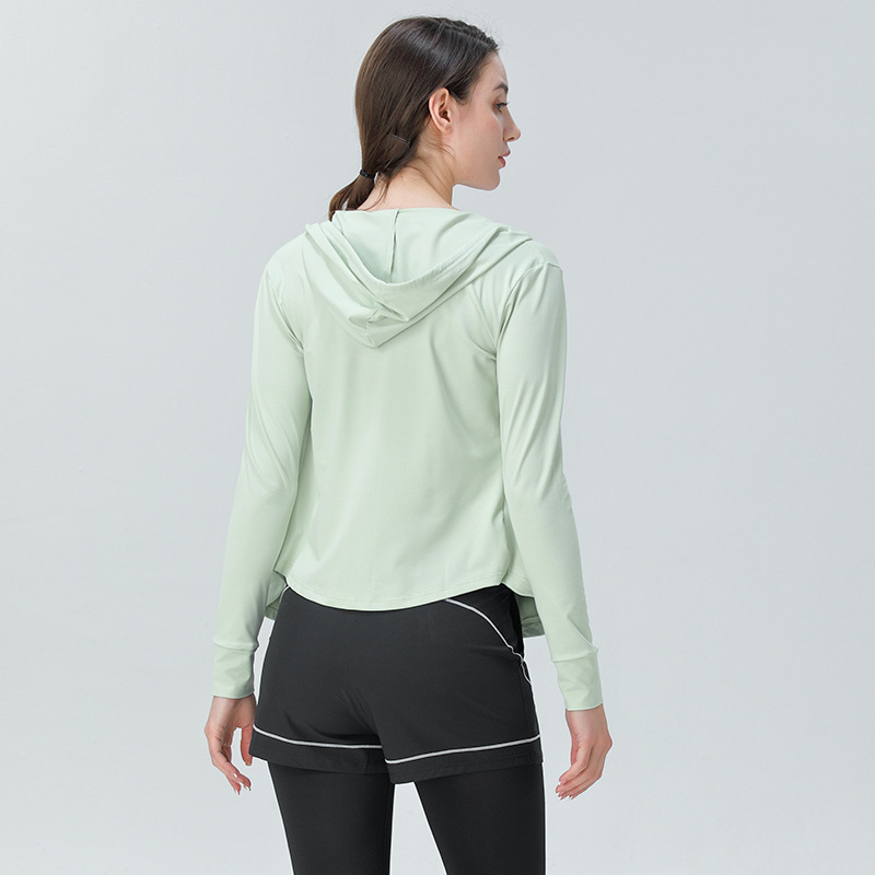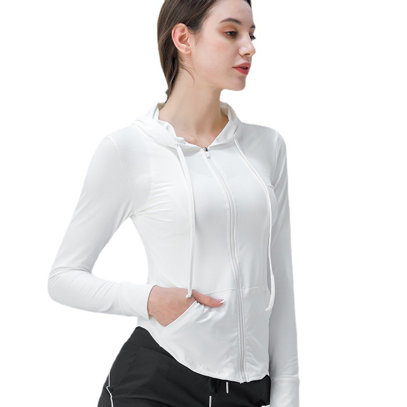 Yoga Wear Tops Women's Zipper Thin Cardigan Running Sports Jacket Long Sleeve Hooded Fitness Wear